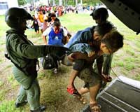 Chishan, Taiwan (AFP) Aug 17, 2009 Taiwanese soldiers searched remote areas for survivors and bodies Monday as officials said over 1,600 people needed airlifting to safety nine days after Typhoon Morakot. The official death toll rose to 126, but President Ma Ying-jeou has warned the number could climb to more than 500, with hundreds feared buried. About 40,000 troops began a new phase of the rescue operation, shifting focus to combing remote areas, said Transport Minister Mao Chih-kuo, who is leading the emergency response. A total of 1,638 people still had to be airlifted as of Sunday night from 44 severely damaged villages, he said. But many were unwilling to leave their ancestral homes, fearing they would not be allowed to return, according to officials. "Most of the people still stranded on the mountain refuse to leave," military spokesman Colonel Tai Chan-Teh told AFP. It could take up to six months to rebuild roads and bridges and those refusing to leave may have to be removed by force, Mao said. "One could hardly imagine the cost if those people continue to stay on the mountains and all of their daily needs have to be airlifted," he said. At a makeshift morgue in the southern Chishan township, a senior police officer said work was also going slowly. He said only about 50 bodies had been processed because corpses were buried so deep. "We have been working here round-the-clock for days. But while we hope to help families recover the bodies of their loved ones on the mountain, it is not easy to find them. The mud they were buried in is often a few stories high," the officer, who only gave his surname, Chang, told AFP. As relatives took it upon themselves to search for loved ones, the transport ministry blocked roads in five seriously affected counties to prevent the public from disrupting official rescue efforts. The typhoon has turned into a political storm for Taiwan's president, who acknowledged widespread public anger over the weekend by apologising to survivors for failing to recognise the scale of the crisis in time. "I will take full responsibility whatever the blame is. After all, I'm the president of this country," Ma told CNN. Aid from around the world continued to pour in Monday as a five-member European Union delegation arrived to assess how the EU could best help, the foreign ministry said. A second United States military C-130 transport aircraft landed in southern Taiwan on Monday, delivering water purification tablets, the defence ministry said. The first flight arrived Sunday, marking the first US military activity in Taiwan since 1979, when troops based here left because Washington shifted its diplomatic recognition from Taipei to Beijing. The first of two US heavy-lift military helicopters also arrived Monday, the ministry said. The helicopters, each capable of carrying up to 16 tonnes, can be used to airlift excavators and bulldozers to the mountainous areas that mudslides have left inaccessible by road, Taiwanese media said. Beijing also offered large helicopters used during last year's earthquake in China. But Taipei declined the offer due to national security concerns, the United Daily News reported, citing unnamed defence officials. Typhoon Morakot slammed into Taiwan on August 8, dumping more than three metres (120 inches) of rain that unleashed floods and mudslides which tore through houses and buildings, ripped up roads and smashed bridges. It was the worst-ever typhoon to strike Taiwan, the president said on Friday, saying the scale of the damage was more severe than a 1959 typhoon that killed 667 people and left around 1,000 missing. pol-aw-cty-dd/njc Share This Article With Planet Earth