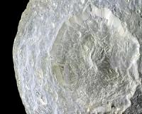 Pasadena CA (JPL) Mar 30, 2010 The highest-resolution-yet temperature map and images of Saturn's icy moon Mimas obtained by NASA's Cassini spacecraft reveal surprising patterns on the surface of the small moon, including unexpected hot regions that resemble "Pac-Man" eating a dot, and striking bands of light and dark in crater walls. "Other moons usually grab the spotlight, but it turns out Mimas is more bizarre than we thought it was," said Linda Spilker, Cassini project scientist at NASA's Jet Propulsion Laboratory in Pasadena, Calif. "It has certainly given us some new puzzles." Cassini collected the data on Feb. 13, during its closest flyby of the moon, which is marked by an enormous scar called Herschel Crater and resembles the Death Star from "Star Wars." Scientists working with the composite infrared spectrometer, which mapped Mimas' temperatures, expected smoothly varying temperatures peaking in the early afternoon near the equator. Instead, the warmest region was in the morning, along one edge of the moon's disk, making a sharply defined Pac-Man shape, with temperatures around 92 Kelvin (minus 294 degrees Fahrenheit). The rest of the moon was much colder, around 77 Kelvin (minus 320 degrees Fahrenheit). A smaller warm spot - the dot in Pac-Man's mouth - showed up around Herschel, with a temperature around 84 Kelvin (minus 310 degrees Fahrenheit). The warm spot around Herschel makes sense because tall crater walls (about 5 kilometers, or 3 miles, high) can trap heat inside the crater. But scientists were completely baffled by the sharp, V-shaped pattern. "We suspect the temperatures are revealing differences in texture on the surface," said John Spencer, a Cassini composite infrared spectrometer team member based at Southwest Research Institute in Boulder, Colo. "It's maybe something like the difference between old, dense snow and freshly fallen powder." Denser ice quickly conducts the heat of the sun away from the surface, keeping it cold during the day. Powdery ice is more insulating and traps the sun's heat at the surface, so the surface warms up. Even if surface texture variations are to blame, scientists are still trying to figure out why there are such sharp boundaries between the regions, Spencer said. It is possible that the impact that created Herschel Crater melted surface ice and spread water across the moon. That liquid may have flash-frozen into a hard surface. But it is hard to understand why this dense top layer would remain intact when meteorites and other space debris should have pulverized it by now, Spencer said. Icy spray from the E ring, one of Saturn's outer rings, should also keep Mimas relatively light-colored, but the new visible-light images from the flyby paint a picture of surprising contrasts. Cassini imaging team scientists didn't expect to see dark streaks trailing down the bright crater walls or a continuous, narrow pile of concentrated dark debris tracing the foot of each wall. The pattern may appear because of the way the surface of Mimas ages, said Paul Helfenstein, a Cassini imaging team associate based at Cornell University, Ithaca, N.Y. Over time, the moon's surface appears to accumulate a thin veil of silicate minerals or carbon-rich particles, possibly because of meteor dust falling onto the moon, or impurities already embedded in surface ice. As the sun's warming rays and the vacuum of space evaporate the brighter ice, the darker material is concentrated and left behind. Gravity pulls the dark material down the crater walls, exposing fresh ice underneath. Although similar effects are seen on other moons of Saturn, the visibility of these contrasts on a moon continually re-paved with small particles from the E ring helps scientists estimate rates of change on other satellites. "These processes are not unique to Mimas, but the new high-definition images are like Rosetta stones for interpreting them," Helfenstein said.