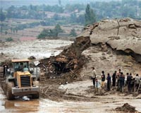 Beijing (AFP) Sept 9, 2008 At least 56 people were killed after an industrial mudslide swept through a small mining town in northern China, state media said late Tuesday, updating an earlier government toll of 34 dead. A market, homes and a three-storey building were buried under tonnes of sludge when the disaster hit Taoshi township, Shanxi province, on Monday, Xinhua news agency said, adding 35 people were also injured. More than 1,000 rescue workers were frantically looking for survivors on Tuesday, but the Xinhua report said it was not clear how many were still missing, with a local official quoted as saying rescuers had searched through 70 percent of the rubble. "Most importantly we must focus on the search work. We must make a 100 percent effort to save the lives of people," Shanxi governor Meng Xuenong said on state television earlier. Suzhou TV said the fatalities included workers not only from Shanxi, but also the municipality of Chongqing in southwest China and the central province of Hubei. "For many, the identity has still not been established," the TV station said in a report on its website. Photos of the rescue showed workers wading through the mud probing for victims with long poles. The incident occurred about 8:00 am on Monday when a reservoir holding waste ore dregs at an illegal mine collapsed, sending mud, rocks and the industrial sludge storming into Taoshi, China's work safety administration said. Stall operators at the the market place and office workers were just arriving to their jobs when the mudslide came crashing down. "It was terrible," Xinhua quoted local worker Wei Guanghui as saying. "The mud-rock flow looked about seven metres (23 feet) high. It roared down the valley and washed away the market and the houses in a few minutes." Taoshi sits in a narrow valley at the base of Tashan mountain and has a population of around 23,000 people, with the ore mining industry a major employer, according to a Shanxi government website. The Hong Kong-based Information Centre for Human Rights and Democracy, citing locals at the scene, said up to 500 people could have been buried, but local authorities could not confirm any numbers. "We really don't know how many people were there at that time. We are busy with search and rescue work," an official at Xiangfen county, which oversees Taoshi, told AFP by phone. Work safety officials are blaming the Tashan ore mine for the disaster and have detained its boss and eight other company officials, the administration said on its website. The Tashan mining company was operating illegally and the stored waste ore dregs had surpassed the capacity of the reservoir, Wang Dexue, vice head of the work safety administration, said on state television. Industrial accidents occur frequently in China, where mines and factories often operate illegally or in contravention of safety laws. Government officials are known to turn a blind eye or collude with mining bosses to maximise returns from operations, as demand for resources in China has skyrocketed in recent years and offers the prospect of huge profits. Nearly 3,800 people died in Chinese coal mines last year according to official figures, but independent monitors say the real figure is probably higher since many accidents are covered up. Last week, 27 miners were killed in a mining explosion in northeastern China's Liaoning province, while 15 workers were trapped in a mining flood in Henan province, which neighbours Shanxi. Community Email This Article Comment On This Article Related Links Bringing Order To A World Of Disasters A world of storm and tempest When the Earth Quakes