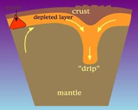 Tempe AZ (SPX) May 28, 2009 There are very few places in the world where dynamic activity taking place beneath Earth's surface goes undetected. Volcanoes, earthquakes, and even the sudden uplifting or sinking of the ground are all visible results of restlessness far below, but according to research by Arizona State University (ASU) seismologists, dynamic activity deep beneath us isn't always expressed on the surface. The Great Basin in the western United States is a desert region largely devoid of major surface changes. The area consists of small mountain ranges separated by valleys and includes most of Nevada, the western half of Utah and portions of other nearby states. For tens of millions of years, the Great Basin has been undergoing extension--the stretching of Earth's crust. While studying the extension of the region, geologist John West of ASU was surprised to find that something unusual existed beneath this area's surface. West and colleagues found that portions of the lithosphere--the crust and uppermost mantle of the Earth--had sunk into the more fluid upper mantle beneath the Great Basin and formed a large cylindrical blob of cold material far below the surface of central Nevada. It was an extremely unexpected finding in a location that showed no corresponding changes in surface topography or volcanic activity, West says. West compared his unusual results of the area with tomography models--CAT scans of the inside of Earth--done by geologist Jeff Roth, also of ASU. West and Roth are graduate students; working with their advisor, Matthew Fouch, the team concluded that they had found a lithospheric drip. Results of their research, funded by the National Science Foundation (NSF), were published in the May 24 issue of the journal Nature Geoscience. "The results provide important insights into fine-scale mantle convection processes, and their possible connections with volcanism and mountain-building on Earth's surface," said Greg Anderson, program director in NSF's Division of Earth Sciences. A lithospheric drip can be envisioned as honey dripping off a spoon, where an initial lithospheric blob is followed by a long tail of material. When a small, high-density mass is embedded near the base of the crust and the area is warmed up, the high-density piece will be heavier than the area around it and it will start sinking. As it drops, material in the lithosphere starts flowing into the newly created conduit. Seismic images of mantle structure beneath the region provided additional evidence, showing a large cylindrical mass 100 km wide and at least 500 km tall (about 60 by 300 miles). "As a general rule, I have been anti-drip since my early days as a scientist," admits Fouch. "The idea of a lithospheric drip has been used many times over the years to explain things like volcanism, surface uplift, surface subsidence, but you could never really confirm it--and until now no one has caught a drip in the act, so to speak." Originally, the team didn't think any visible signs appeared on the surface. "We wondered how you could have something like a drip that is drawing material into its center when the surface of the whole area is stretching apart," says Fouch. "But it turns out that there is an area right above the drip, in fact the only area in the Great Basin, that is currently undergoing contraction. John's finding of a drip is therefore informing geologists to develop a new paradigm of Great Basin evolution." Scientists have known about the contraction for some time, but have been arguing about its cause. As a drip forms, surrounding material is drawn in behind it; this means that the surface should be contracting toward the center of the basin. Since contraction is an expected consequence of a drip, a lithospheric drip could well be the answer to what is being observed in the Great Basin. "Many in the scientific community thought it couldn't be a drip because there wasn't any elevation change or surface manifestation, and a drip has historically always been connected with major surface changes," says West. "But those features aren't required to have the drip. Under certain conditions, like in the Great Basin, drips can form with little or no corresponding changes in surface topography or volcanic activity." All the numerical models computed by the team suggest that the drip isn't going to cause things to sink down or pop up quickly, or cause lots of earthquakes. There would likely be little or no impact on the people living above the drip. The team believes that the drip is a transient process that started some 15-20 million years ago, and probably recently detached from the overlying plate. "This finding would not have been possible without the incredible wealth of seismic data captured by EarthScope's Transportable Array (TA) as it moved across the western United States," says West. "We had access to data from a few long-term stations in the region, but the excellent data and 75-km grid spacing of the TA is what made these results possible." This is a great example "of science in action," says Fouch. "We went in not expecting to find this. Instead, we came up with a hypothesis that was not what anyone had proposed previously for the area, and then we tested the hypothesis with as many different types of data as we could find. "In all cases so far it has held up. We're excited to see how this discovery plays a role in the development of new ideas about the geologic history of the western U.S." Share This Article With Planet Earth