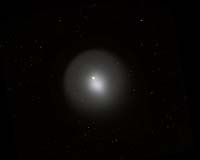 Cambridge MA (SPX) Nov 28, 2007 Comet 17P/Holmes, which dazzled sky watchers with a dramatic outburst that made it visible to the unaided eye, now is fading from sight. However, before it returns to the obscurity from which it came, astronomers at the MMT Observatory took a final look. In late October, Holmes brightened by a factor of about one million times when it ejected a vast cloud of dust and gas. That cloud expanded over time and now spans more than 870,000 miles, making it larger than the Sun (which is 865,000 miles in diameter). On November 4, Smithsonian scientists snapped this photo of Comet Holmes using an instrument called Megacam, which is one of the largest CCD cameras in existence. Megacam holds 36 9-megapixel CCD chips, for a total of more than 300 megapixels. Separate exposures through three color filters were combined to make this final, full-color image. Individual stars appear as a line of colored dots because the photos were centered on the comet, which moved slightly across the sky. Currently, Comet Holmes has a total brightness of 3rd magnitude, however its large size on the sky (and resulting low surface brightness) makes it difficult to see without binoculars or a telescope. However, when it was discovered in 1892 it underwent a second bright outburst five months after the first. If Holmes repeats its historical performance, then this comet may offer viewers one more chance to see the show before it bows from the stage. Community Email This Article Comment On This Article Related Links Harvard-Smithsonian Center for Astrophysics Asteroid and Comet Mission News, Science and Technology
