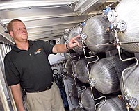 Uppsala, Sweden (SPX) Jun 17, 2008 An international research team led by Swedish Professor Rajeev Ahuja, Uppsala University, has demonstrated an atomistic mechanism of hydrogen release in magnesium nanoparticles - a potential hydrogen storage material. The findings have been published in the online edition of Proceedings of the National Academy of Science (PNAS). It is becoming clear that cars of the future will have to move from using the combination of petrol and a combustion engine in order to combat global warming and potential oil shortages. One of the prime candidate technologies are fuel cells using hydrogen gas as fuel, chiefly because hydrogen is among the most abundant elements on earth and is able of producing energy through chemical reactions with oxygen in the fuel cells releasing only water - an environmentally benign by-product. Storing hydrogen gas in a compact way is, however, still an unsolved problem. Much research effort has been directed at absorbing hydrogen in metal powders, forming so-called metal hydrides. Magnesium may absorb up to 7.7 weight per cent of hydrogen, and has commonly been studied for this purpose, especially since fast loading and unloading of hydrogen can be accomplished by adding catalysts like iron and nickel particles. It has been speculated that the catalysts act as shuttles, helping to transport hydrogen out of the material. With the help of computer simulations of magnesium clusters at the quantum mechanical level, the Uppsala researchers and their colleagues have now been able to show in atomic scale how this happens and why only a small amount of catalysts are necessary to improve the hydrogen release. The extensive simulations were performed at Uppsala University's Multidisciplinary Center for Advanced Computational Science (UPPMAX). "We expect the findings to aid further technical improvements of magnesium-based hydrogen storage materials, as well as other related light metal hydrides," says Professor Raajev Ahuja. Read the article in the Early Edition of PNAS. Community Email This Article Comment On This Article Related Links Uppsala University Powering The World in the 21st Century at Energy-Daily.com