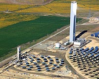 Seville, Spain (SPX) Jun 23, 2009 Abengoa Solar's first high-temperature power tower, Eureka, was unveiled by Mart�n Soler M�rquez, Director of Innovation, Science and Enterprise for the Andalusian Regional Government. This power tower is intended to test, on an experimental basis, a new type of receiver that will achieve the higher temperatures needed for higher-efficiency thermodynamic power cycles. It is the only plant featuring these characteristics in operation in Andalusia and Europe. The aim of this new technology is to increase plant performance, thereby reducing both generating costs and the area of the solar field. This experimental plant occupies a 16,000-squarefoot portion of the Sol�car Platform and uses 35 heliostats and a 164-foot tower which houses the experimental superheating receiver. The power output capacity of the experimental plant is approximately 2MW. T he plant includes a thermal energy storage system supplying power supply to the grid for short periods when there is no sunlight. According to Rafael Osuna, General Manger Abengoa Solar New Technologies, "this marks the beginning of the next experimental phase for this high-potential solar power tower technology which could lead to an important step forward in our goals of generating clean electricity at competitive prices. Our significant investment in research and development has made this groundbreaking concentrating solar power technology a reality." Abengoa Solar now has three solar power towers in operation, two for commercial use and this experimental tower. The new plant is part of the Sol�car Platform, a solar thermal and photovoltaic solar installation complex scheduled for completion in 2013. Thanks to its 300-megawatt power output, the plant will supply clean electricity to 153,000 households and eliminate the emission of 185,000 tons of CO2 per year, reaching a total of four million tons over the course of its useful life. The Sol�car Platform also features a research and development area that is building several demonstration plants for new technologies. This makes the platform the only place in the world with installations employing practically every type of solar technology available, whether in commercial use or under demonstration. Abengoa Solar focuses its activity on the development and application of technology for generating electrical power with the sun. Share This Article With Planet Earth