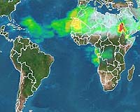 Madison WI (SPX) Jun 03, 2008 As the official June 1 start of the Atlantic hurricane season approaches, forecasters are developing predictions about the severity of this year's season. For the first time this year, African dust may provide a piece of this puzzle. Researchers in the University of Wisconsin-Madison's Cooperative Institute for Meteorological Satellite Studies (CIMSS) reported earlier this year that African dust storms may dampen hurricanes by cooling sea surface temperature of the tropical Atlantic (visit http://www.news.wisc.edu/14769 for more). Now CIMSS scientist Amato Evan is extending this work, offering a dust storm activity forecast as a tool to help predict severity of the upcoming hurricane season. Based on patterns of precipitation in Africa during the past year, Evan predicts a moderate level of dust storm activity this summer. "We have a computer model that takes the dust forecast and tries to estimate how much that dust storm activity will cool the ocean," he says. "There is not likely to be an anomalously large warming or cooling [of ocean temperatures] due to dust storm activity." The dust originates in the Sahara Desert, where windstorms loft particles and carry them west over the Atlantic. High levels of airborne dust reduce the amount of sunlight that reaches the ocean, lowering sea surface temperatures and, generally, hurricane probability. In contrast, low dust years correlate with higher ocean temperatures and conditions more conducive to hurricane formation. Warmer waters also contribute to storm severity. "If you have really warm water, it's more likely a hurricane could reach category 5," Evan says. For example, the record-breaking 2005 hurricane season had below-average dust storm activity, very warm sea surface temperatures and an unprecedented four hurricanes that reached category 5, the highest classification. For this year, Evan's models predict that dust will cool the Atlantic by about 1.1 degrees Celsius, very close to the average effect of dust on the ocean temperature during the past 27 years. He says this amount of cooling alone is not likely to trigger especially high or low hurricane activity. In the future, Evan hopes to be able to use dust forecasts to predict large peaks or drops in Atlantic Ocean temperatures that may influence tropical storm activity. "Now that the dataset is over a quarter of a century long, we finally have enough information that we can do this," he says. Community Email This Article Comment On This Article Related Links Dust forecasting University of Wisconsin-Madison Bringing Order To A World Of Disasters When the Earth Quakes A world of storm and tempest