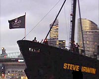 Sydney (AFP) Feb 14, 2008 A ship carrying militant anti-whaling activists was due to head back to Antarctic waters Thursday to resume harassing Japanese whalers, the Sea Shepherd Conservation Society said. The group's ship the Steve Irwin has been in port in Melbourne, Australia for 12 days to refuel and take on supplies after weeks of pursuing the Japanese whaling fleet in the Southern Ocean. "A special thank you to Australia," the group's leader Paul Watson said in a message posted on Sea Shepherd's website. "You helped to send the Steve Irwin back to sea as a Valentine's Day gift to the whales." Donations of cash, food and supplies had "flooded onto the decks of the whale conservation ship" while it was in port, the statement said, adding that it was due to leave for Antarctic waters on Thursday night. The Steve Irwin intends to "harass and intervene" against the whalers for the next four to five weeks in an effort to prevent them hunting until the end of the season. "In January we prevented them from slaughtering whales for three weeks, we cost the Japanese over two million dollars in fuel during the pursuit and we exposed their illegal whaling activities worldwide, and most importantly we got the story into the Japanese media," said Watson. "This provoked a real debate in Japan on the cost of whaling to Japan's reputation." On January 15, two activists from the Steve Irwin boarded a Japanese harpoon ship to deliver a protest note, setting off a two-day stand-off before they were released to an Australian customs vessel. An international moratorium bans the slaughter of whales for commercial purposes but Japan exploits a loophole which allows the animals to be killed for scientific research and targeted 1,000 this season. Watson said that next year Sea Shepherd intends to return to the Southern Ocean with a second ship "with the objective of mounting a non-stop pursuit." The environmental group Greenpeace had also hounded the Japanese whalers but abandoned the chase for the season after running low on fuel in late January. Community Email This Article Comment On This Article Related Links Follow the Whaling Debate