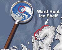 Montreal (AFP) July 30, 2008 Two masses of ice together measuring almost 20 square kilometers (seven square miles) have broken off an Arctic ice shelf, the biggest breakup of Arctic ice in three years, Canadian officials announced. The chunks broke off from the Ward Hunt Ice Shelf on the coast of Ellesmere Island in the Canadian Arctic Archipelago, forming two floating islands of ice measuring four to five square kilometers (1.9 square miles) and 14 square kilometers (5.4 square miles), officials said. "The first broke off sometime around July 22 and the second in the night of July 23 to 24," Luc Desjardins, a senior iceberg forecaster for the Canadian Ice Service, told AFP Tuesday, noting that beads of smaller slabs also detached from the ice shelf and are now adrift. Scientists confirmed the schism in a fly-over of one of the resulting masses of ice and by analyzing satellite data. It was the largest breakup of an ice shelf in the Arctic since the Ayles Ice Shelf split off Ellesmere Island in 2005 and formed a floating island roughly the size of New York city's Manhattan, or about 66 square kilometers (25 square miles). The August 2005 rupture caused such a splash, the burst was detected by Canadian seismology equipment 250 kilometers (155 miles) away, but it was not until scientists analyzed satellite data that they realized what had happened. Five vast ice shelves gird the north side of Ellesmere Island in Canada's Nunavut territory. Ward Hunt is considered the largest, with a surface area of 443 square kilometers (171 square miles). The ice shelves, vast plateaus of thick ice floating on the ocean but attached to land, began to form more than 4,000 years ago, scientists believe. "We ascertained that in the 20th century 90 percent of the ice surface area (in the region) has been lost," said Derek Mueller, a Polar specialist at Trent University in Peterborough. "So, this phenomena has been ongoing on for a long time, but we're now seeing punctuated events," he said. He pointed to the Petersen Ice Shelf which lost a third of its surface area between 2005 and 2007, as an example. This calving is emblematic of the far north's warming, say other scientists. A fissure formed at the center of the Ward Hunt Ice Shelf in 2002, leaving a lip of ice clinging to Ellesmere Island. A new crack measuring 18 kilometers (11 miles) long and 40 meters (131 feet) deep was discovered earlier this year. But "it doesn't look like the latest breakup of ice is directly tied to the fracture that was detected in the spring," said Desjardins. "The 2002 fissure cut the ice shelf in two pieces. I believe over time the shelf's integrity, its entire structure, was simply weakened," Mueller explained. Community Email This Article Comment On This Article Related Links Beyond the Ice Age