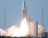 Kourou, French Guiana (SPX) Dec 22, 2008 Arianespace has completed its ninth year of Ariane 5 operations with another successful dual-payload mission of the workhorse commercial vehicle, orbiting two telecommunications satellites for Europe's Eutelsat telecommunications operator. The heavy-lift Ariane 5 ECA lifted off from Europe's Spaceport in French Guiana at 7:35 p.m. local time, and deployed its HOT BIRD 9 and W2M passengers during a 32-minute flight. Payload lift performance for tonight's launch was approximately 8,340 kg. For the combined weight of the two Eutelsat satellites. It brings the total payload mass lofted by Ariane 5's six missions in 2008 to more than 56,700 kg. - including the 10 civilian and defense telecommunications spacecraft carried to geostationary transfer orbit, as well as the large Jules Verne Automated Transfer Vehicle (ATV), which was placed in a 260-km. Circular orbit to service the International Space Station. This flight was Ariane 5's 28th consecutive successful mission, demonstrating that "launcher performance, reliability and availability can go hand-in-hand," said Jean-Yves Le Gall, Arianespace's Chairman and CEO, during post-launch comments at the Spaceport. "Tonight's success also underscores the quality of the relationship that unites us with Eutelsat, which entrusted us with the simultaneous launch of two of its satellites - and I want to very warmly thank Giuliano Berretta [the CEO of Eutelsat Communications], for his trust," he added. "In 2008, we marked the 25th anniversary of our cooperation - with HOT BIRD 9 and W2M being the 22nd and 23rd satellites launched by Arianespace for Eutelsat." Berretta, who was speaking from Paris, congratulated Arianespace for the double success in support of his company's telecommunications satellite fleet. "I hope everyone admired this absolutely beautiful liftoff of Ariane and the separation of our two spacecraft. I would really like to thank Mr. Le Gall for the great successes of the Ariane launcher."