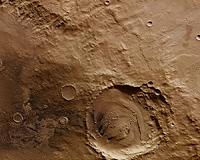 Wind And Water Have Shaped Schiaparelli On MarsBonn, Germany (SPX) Dec 13, 2010 The small crater embedded in the north-western rim of the Schiaparelli impact basin features prominently in this new image acquired by the High-Resolution Stereo Camera (HRSC) operated by the German Aerospace Center (Deutsches Zentrum fur Luft- und Raumfahrt; DLR) on ESA's Mars Express spacecraft. The image was acquired on 15 July 2010. All around is evidence of water in the past and the s ... read more |