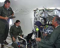 Houston TX (SPX) May 14, 2008 Lunar dust could be more than a housekeeping issue for astronauts who visit the moon. Their good health may depend on the amount of exposure they have to the tiny particles. To prepare for a return to the moon, researchers with the National Space Biomedical Research Institute (NSBRI) are evaluating how dust deposits in the lungs in reduced gravity in order to assess the health risk of long-term exposure to the particles. The findings will influence the design of lunar bases and could also provide benefits for health care on Earth, such as improved delivery of aerosol medications to the lungs. NSBRI Human Factors and Performance Team researcher Dr. Kim Prisk said there are major questions that need to be answered. "In the big picture, the questions are: How much goes into the lung? Where does it go? How long does it stay? And how nasty is the stuff?" said Prisk, who is an adjunct professor in the Department of Medicine at the University of California, San Diego. During the Apollo lunar missions in the late 1960s and 1970s, the clingy particles were easily transported via spacesuits into the lunar lander following moonwalks. The amount of dust inside the vehicle was so great some astronauts reported they could smell it. Even though there were no known illnesses due to exposure, lunar dust is a concern because it has properties comparable to that of fresh-fractured quartz, a highly toxic substance. However, the Apollo flights lasted only a few days. During the proposed return to the moon, astronauts will be exposed to lunar dust for longer periods of time, including missions that could last months. Due to the moon's reduced gravity and the size of its dust particles, the respiratory system's process to remove unwanted matter may not work as efficiently as it does on Earth. "In the moon's fractional gravity, particles remain suspended in the airways rather than settling out, increasing the chances of distribution deep in the lung, with the possible consequence that the particles will remain there for a long period of time," Prisk said. The lungs are a highly sensitive organ because of the large surface area that delivers oxygen molecules through a thin membrane directly to the blood. The health risk to astronauts increases as dust particles go deeper into the lungs. To conduct the research, scientists take measurements during flights on NASA's Microgravity Research Aircraft. These airplanes are used to provide short periods of reduced- and zero-gravity during a series of steep climbs and descents. "During the portions of the flight in which gravity is reduced to levels seen on the lunar surface, we inject particles into a mouthpiece through which the study participants breathe," Prisk said. "Subjects breathe in and out, and we measure how the particles behave and how many end up inside the lung." Prisk said the research flights have been beneficial so far. "With the reduced-gravity flights, we're improving the process of assessing environmental exposure to inhaled particles," he said. "We've learned that tiny particles (less than 2.5 microns) which are the most significant in terms of damage, are greatly affected by alterations in gravity." The next step is to investigate the risks and determine ways to limit exposure. The severity of the risks will determine the level of engineering work needed to limit exposure to lunar dust, which also can cause problems for equipment. As for benefits on Earth, the research could give scientists a better understanding of how the lungs work, improving the understanding of how particles distribute within the lungs. "If we learn how to target drugs to specific areas inside the lung, it will be possible to achieve optimal results with small quantities of drugs delivered to exactly the right place in the lung, and it will minimize side effects," Prisk said. Community Email This Article Comment On This Article Related Links National Space Biomedical Research Institute Mars News and Information at MarsDaily.com Lunar Dreams and more
