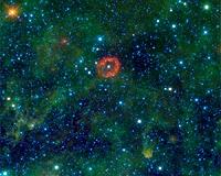 Jumbo Jellyfish Or Massive StarWashington DC (SPX) Jun 18, 2010 Some might see a blood-red jellyfish in a forest of seaweed, while others might see a big, red eye or a pair of lips. In fact, the red-colored object in this new infrared image from NASA's Wide-field Infrared Survey Explorer (WISE) is a sphere of stellar innards, blown out from a humongous star. The star (white dot in center of red ring) is one of the most massive stellar residents of our ... read more |