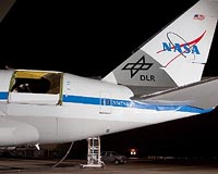 NASA Tests Jumbo Jet With Open Side For Airborne Telescope ObservationsEdwards, CA (SPX) Dec 21, 2009 A NASA jumbo jet that will help scientists unlock the origins of the universe with infrared observations reached a milestone Friday when doors covering the plane's telescope were fully opened in flight. The Stratospheric Observatory for Infrared Astronomy, a modified 747 jet known as SOFIA, flew for one hour and 19 minutes, which included two minutes with the telescope's doors fully opened ... read more |