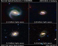 Baltimore MD (SPX) Jul 30, 2008 A frequent sign of the maturity of a spiral galaxy is the formation of a ribbon of stars and gas that slices across the nucleus, like the slash across a "no smoking" sign. In a landmark study of more than 2,000 spiral galaxies from the largest galaxy census conducted by NASA's Hubble Space Telescope, astronomers found that so-called barred spiral galaxies were far less plentiful 7 billion years ago than they are today, in the local universe. The study's results confirm the idea that bars are a sign of galaxies reaching full maturity as the "formative years" end. The observations are part of the Cosmic Evolution Survey (COSMOS). This new detailed look at the history of bar formation, made with Hubble's Advanced Camera for Surveys, provides clues to understanding when and how spiral galaxies formed and evolved over time. A team led by Kartik Sheth of the Spitzer Science Center at the California Institute of Technology in Pasadena discovered that only 20 percent of the spiral galaxies in the distant past possessed bars, compared with nearly 70 percent of their modern counterparts. Bars have been forming steadily over the last 7 billion years, more than tripling in number. "The recently forming bars are not uniformly distributed across galaxy masses, however, and this is a key finding from our investigation," Sheth explained. "They are forming mostly in the small, low-mass galaxies, whereas among the most massive galaxies, the fraction of bars was the same in the past as it is today." The findings, Sheth continued, have important ramifications for galaxy evolution. "We know that evolution is generally faster for more massive galaxies: They form their stars early and fast and then fade into red disks. Low-mass galaxies are known to form stars at a slower pace, but now we see that they also made their bars slowly over time," he said. COSMOS covers an area of sky nine times larger than the full Moon, surveying 10 times more spiral galaxies than previous observations. In support of the Hubble galaxy images, the team derived distances to the galaxies in the COSMOS field using data from Hubble and an assortment of ground-based telescopes. Bars form when stellar orbits in a spiral galaxy become unstable and deviate from a circular path. "The tiny elongations in the stars' orbits grow and they get locked into place, making a bar," explained team member Bruce Elmegreen of IBM's research Division in Yorktown Heights, N.Y. "The bar becomes even stronger as it locks more and more of these elongated orbits into place. Eventually a high fraction of the stars in the galaxy's inner region join the bar." Added team member Lia Athanassoula of the Laboratoire d'Astrophysique de Marseille in France: "The new observations suggest that the instability is faster in more massive galaxies, perhaps because their inner disks are denser and their gravity is stronger." Bars are perhaps one of the most important catalysts for changing a galaxy. They force a large amount of gas towards the galactic center, fueling new star formation, building central bulges of stars, and feeding massive black holes. "The formation of a bar may be the final important act in the evolution of a spiral galaxy," Sheth said. "Galaxies are thought to build themselves up through mergers with other galaxies. After settling down, the only other dramatic way for galaxies to evolve is through the action of bars." Our Milky Way Galaxy, another massive barred spiral, has a central bar that probably formed somewhat early, like the bars in other large galaxies in the Hubble survey. "Understanding how bars formed in the most distant galaxies will eventually shed light on how it occurred here, in our own backyard," Sheth said. Other members of the study include Debra Elmegreen (Vassar College); Nick Scoville (COSMOS principal investigator); Peter Capak, Richard Ellis, Mara Salvato, and Lori Spalsbury (California Institute of Technology); Roberto Abraham (University of Toronto); Bahram Mobasher (University of California, Riverside); Eva Schinnerer (Max Planck Institute for Astronomy, Heidelberg); Linda Strubbe and Andrew West (University of California, Berkeley); Mike Rich (University of California, Los Angeles); and Marcella Carollo (ETH Zurich). Community Email This Article Comment On This Article Related Links Space Telescope Science Institute (STScI) Stellar Chemistry, The Universe And All Within It