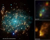 Black Hole Blows Big BubbleBoston MA (SPX) Jul 13, 2010 This composite image shows a powerful microquasar produced by a black hole in the outskirts of the nearby (12.7 million light years) galaxy NGC 7793. The large image contains data from the Chandra X-ray Observatory in red, green and blue, optical data from the Very Large Telescope in light blue, and optical emission by hydrogen ("H-alpha") from the CTIO 1.5-m telescope in gold. The upper i ... read more |