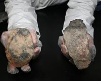 London, UK (SPX) Nov 08, 2010 Was it the evolution of the hand, or of the brain, that enabled prehistoric toolmakers to make the leap from simple flakes of rock to a sophisticated hand axe? A new study finds that the ability to plan complex tasks was key. The research, published in the Public Library of Science journal PLoS ONE, is the first to use a cyber data glove to precisely measure the hand movements of stone tool making, and compare the results to brain activation. "Making a hand axe appears to require higher-order cognition in a part of the brain commonly known as Broca's area," said Emory anthropologist Dietrich Stout, co-author of the study. It's an area associated with hierarchical planning and language processing, he noted, further suggesting links between tool-making and language evolution. "The leap from stone flakes to intentionally shaped hand axes has been seen as a watershed in human prehistory, providing our first evidence for the imposition of preconceived, human designs on the natural world," he said. Stout is an experimental archeologist who recreates prehistoric tool making to study the evolution of the human brain and mind. Subjects actually knap tools from stone as activity in their brains is recorded. "Changes in the hand and grip were probably what made it possible to make the first stone tools," Stout said. "Increasingly we're finding that the earliest tools required visual and motor skills, but were conceptually simple." For this study, Stout used a data glove to record the exact hand postures of the research subject across a range of prehistoric technologies. He teamed with Aldo Faisal, a neuroscientist at Imperial College London, and archeologists Jan Apel of Gotland University College in Sweden and Bruce Bradley of Exeter University in Devon, England. The researchers compared the manual dexterity for the tasks involved in making two types of tools: Oldowan flakes and Late Acheulean hand axes. Simple Oldowan stone flakes are the earliest known tools, dating back 2.6 million years. The Late Acheulean hand axe, going back 500,000 years, embodies a higher level of refinement and standardization. "I assumed that the manual dexterity was going to be greater for making the hand axe," Stout said. "But we found that the hand gestures were so similar that we couldn't distinguish them." A previous study by Stout found differences in the brain activation associated with Oldowan versus Acheulean technologies. It was unclear, however, whether the difference was due to higher-level behavior organization or lower-level differences in manipulative complexity. The results of the data glove study point to higher cognition. "The advances of Late Acheulean technology were not about increased dexterity. They were about the ability to plan complex action sequences," Stout said. A hand axe requires the maker to begin with a precise, symmetrical end in mind. A variety of tools are involved, from a large rock to rough out the basic shape of the axe, to a softer implement, such as an antler billet, to thin and sharpen the edges. The ongoing research could lead to new understanding of the modern human brain. "For the past two million years, stone tool-making has been the most common and consistent human technology, done by virtually every society," Stout said. "It's an important human behavior that probably helped shape our brains."