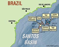 Rio De Janeiro (UPI) Sep 10, 2009 Petroleo Brasileiro SA, Brazil's state-controlled oil company, says its tests show the Guara deepwater offshore field holds between 1.1 billion and 2 billion barrels of oil and initial production may start in 2012 with 50,000 barrels of oil equivalent a day. Petrobras discovered Guara, part of the BM-S-9 area in the offshore Santos Basin, last year but remained guarded about its estimates till now. At least two other fields in the area, known as Carioca and Iguacu, are also said to contain "significant" quantities of oil. The Petrobras statement was echoed by British Gas plc, which has headquarters in Reading, England, and holds a 30 percent stake in the field. Spain's Repsol-YPF has the remaining 25 percent. News of the confirmed oil resource was reflected in stock market gains by all three companies. Industry sources said the delay in Petrobras' announcement of the full extent of Guara reserves was explained by the complex technologies involved in exploring the pre-salt region where the field is located. Petrobras has been investing heavily in developing technologies to enable it to reach the pre-salt levels and make the oil commercially viable. The latest discovery follows a series of smaller discoveries along a 500-mile offshore region and a huge 2007 find at Tupi, the largest discovery in the Americas since Mexico's legendary 1976 find, discovered by a fisherman, Rudesindo Cantarell. The Cantarell field has since peaked and declined and been superseded by Ku-Maloob-Zaap, offshore in the Bay of Campeche. Petrobras has announced plans to spend $174.4 billion over the next five years to more than double Brazil's oil production, but it has not taken up numerous offers of joint ventures with foreign operators. This is because Petrobras on its own has been developing deepwater drilling technologies and working out ways of exploiting fields that are hundreds of miles from the shore. Petrobras said it would use a floating platform -- virtually a vessel -- capable of producing, storing and offloading crude oil to develop Guara. The company estimates it may be producing 3.66 million barrels a day of oil equivalent by 2013, compared with 2.4 million barrels a day in 2008. Most of the new oil will be extracted from the pre-salt region, where oil deposits are located beneath a layer of salt up to 10,000 feet below the ocean surface and another 16,500 feet under the seabed. Petrobras is facing important challenges, the company says on its Web site. "These include analyzing the multiple specifications of this new exploratory frontier, working to develop technological solutions to produce oil and gas in the location, and carrying out the necessary tests to choose the best alternatives, since there are presently no models to be followed." Share This Article With Planet Earth