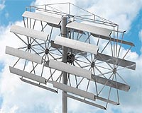 London, UK (SPX) Oct 17, 2008 A radical new design in wind turbines - the AeroCam from BroadStar Wind Systems - will make its European debut here at one of the largest renewable energy conferences ever held in the U.K. BroadStar, an engineering and technology firm specializing in wind power generation, is exhibiting a full-size version of its new AeroCam at the BWEA30 event at the ExCeL Centre in London October 21-23. BroadStar made its first public appearance in the U.S. in June, where the launch of its AeroCam followed four years of research and development, and the issue of patents earlier this year. Keen interest in the commercial-scale turbine already has been expressed by 27 leading U.S. corporations eager to reduce their energy costs. BroadStar wants to draw similar attention in Europe, where it is pursuing its first beta test sites with interested customers. The innovative AeroCam turbine uses horizontal blades arranged in a rotating cylindrical structure, which can be placed on buildings or to infill existing wind farms. With its parallel rotor blades giving it the appearance of a water wheel, not only does it look radically different from traditional windmill-like designs, but also it is more aerodynamically efficient, smaller and more compact. This means it can be manufactured, transported, installed and maintained at lower cost. Currently there are very few commercial-scale turbines in the 100kW to 500kW class served by the AeroCam. Traditional propeller designs need to be manufactured at the largest possible size for aerodynamic efficiency. This means producing 1.5MW turbines and upwards, which increases their cost and limits their application to remote areas. "Our field trials and wind tunnel tests confirm that our new design has a higher power density than conventional wind turbines and the blades can be smaller without compromising aerodynamic efficiency," says Stephen Else, president of BroadStar Wind Systems. "It can also harness its power in many more locations and generate energy close to where it"s actually required." The main technical innovation in the AeroCam design is its ability to continually adjust the pitch of its rotor blades to an optimum angle as the turbine rotates. This unique active pitch control capability helps optimize its aerodynamic performance for the same reasons a bird changes the shape of its wings in flight. The result is a wind turbine that can handle a wide range of wind velocities, anywhere between 4 and 80 mph (6-130km/h). It also generates its power at lower rotational speed, so there is less noise and vibration, hence less wear and tear. The AeroCam has a very low start-up speed, requiring a wind velocity of just 4 mph (6km/h), and it starts generating power at an unprecedented 5 mph (8km/h), a much lower wind speed than traditional wind turbines. "This is a new and exciting breakthrough in wind energy technology with huge potential to reduce soaring energy costs," says Else. "The London event provides a great opportunity for our European debut, where we can discuss the unique benefits of the AeroCam with industry experts and distributors and a variety of potential customers, including architects, wind farmers, urban developers, commercial companies and government bodies." "The AeroCam has the potential to equip almost every local community, business and government building with its own source of renewable energy and it can also supplement conventional turbines in existing wind farms, significantly increasing the output of electricity." Community Email This Article Comment On This Article Related Links BroadStar Wind Systems Powering The World in the 21st Century at Energy-Daily.com