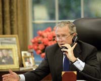 Washington (AFP) Jan 10, 2009 Outgoing US President George W. Bush showed off his lighter side Saturday when speaking at the commissioning ceremony of a nuclear-powered aircraft carrier named after his father. Standing in the shadow of the USS George H.W. Bush, named after the 41st president of the United States, Bush told supporters and navy personnel he was "thrilled to be here to help commission an awesome ship and to honor an awesome man." To prepare for his speech, Bush, 62, said he researched his father's letters, and found one from the late 1940s that discussed the elder Bush's young son, Georgie. "You should see Georgie now. Whenever I come home he greets me and talks a blue streak, sentences disjointed of course," the former president wrote in a letter read aloud by his son. "He tries to say everything, and the results are often hilarious." "Some things do not change," joked the current president -- infamous for his mangling of the English language -- to a laughing audience at Virginia's Norfolk Naval Station. Bush honored his father, a naval aviator during the Second World War and US president from 1989 to 1993, by asking: "What do you give a guy who has been blessed and has just about everything he has ever needed? "Well, an aircraft carrier." The 6.2-billion-dollar, 95,000-ton ship is the 10th and last Nimitz-class "supercarrier" to be commissioned by the US Navy. These gargantuan nuclear-powered aircraft carriers are among the largest ships in the world. The elder Bush noted the carrier has a 4.5-acre (1.82-hectare) landing field, a tower that soars 20 stories above the waterline and, he said, "a feature that a few of my granddaughters in particular would really like -- that's right, onboard this carrier there are a mind-boggling 1,400 telephones." Share This Article With Planet Earth
