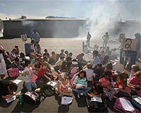 Mission Hills, California (AFP) Nov 13, 2008 The school playing field is littered with hundreds of injured and dead bodies. Overwhelmed paramedics are scrambling to offer treatment to the wounded, sorting through the casualty toll and deciding who will live and who will die. Governor Arnold Schwarzenegger somberly briefs reporters from the eye of the disaster zone, as chaos swirls around him. Californians were given a glimpse of the "Big One" here Thursday, as millions across the state participated in the largest earthquake drill in US history. Though only a simulation, those taking part in the exercise in this northern Los Angeles suburb were only too willing to get into character. "All my friends are gone!" wails Bobby Littrell, 16, one of hundreds of students from Bishop Alemany High School evacuated to a sports field next to a nearby hospital that has been converted into an open-air triage center. "I was in my class and the window shattered on my arm," Littrell adds. "I will survive and I'll have a pretty cool scar. I'm taking this very seriously. I trust the firefighters with my life." Scattered all around are "victims," lying unconscious and bloodied as dozens of Los Angeles firefighters work frantically against the deafening background noise of generators and thudding helicopter rotor blades. As in any other disaster zone, paradmedics are prioritizing the casualties, working out who is need of immediate treatment and who is beyond help. Victims are color-coded and filtered to different treatment areas. Those with a green sticker are classified as walking wounded; a yellow sticker means injuries are serious but not life threatening; a red sticker means treat immediately. A black sticker and the victim is sent to the morgue. Thursday's drill aimed to replicate the aftermath of a 7.8 magnitude earthquake on the San Andreas Fault that leaves 1,800 dead and 53,000 injured. "Our intention is not to scare anybody, but we want to thoroughly educate them on how important it is to be self-sufficient from three to five days, we can't stress that enough," said fire captain Armando Hogan. For Sophia Zacharczuk, 17, who is pretending to nurse a cut head and a bashed chest, the drill has been useful. Zacharczuk believes that it is only a matter of time before a major earthquake strikes in Los Angeles. "I feel that it's really a good exercise, we're gonna need to learn how to handle it when it really happens, because it will happen," she told AFP. "I'm impressed that everybody is getting involved, it's really going to be helpful. I don't think about it too often, but when I really think about it, it really, really scares me, because you can't predict it." Alex Ramirez, 17, who comes from a family of firefighters, said he was aware of the chaos that followed the last major earthquake to hit Los Angeles, the Northridge incident in 1994 that claimed more than 70 lives. "In '94 we weren't prepared and lots of people were injured," he said. "I have a lot of confidence in firefighters." Firefighters treating "victims" on Thursday were under no illusions about the scale of the task that would face them in the event of a real earthquake. "There has been training, but there's one thing between doing it in an exercise and doing it in real life," said Los Angeles Fire Department captain Steve Owens. "When you're overwhelmed and you only have a certain amount of time, you're gonna try to save as many people as you really can." Share This Article With Planet Earth