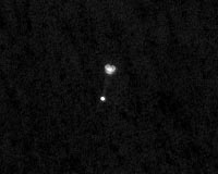 Pasadena CA (JPL) May 26, 2008 A telescopic camera in orbit around Mars caught a view of NASA's Phoenix Mars Lander suspended from its parachute during the lander's successful arrival at Mars Sunday evening, May 25. The image from the High Resolution Imaging Science Experiment (HiRISE) on NASA's Mars Reconnaissance Orbiter marks the first time ever one spacecraft has photographed another one in the act of landing on Mars. Meanwhile, scientists pored over initial images from Phoenix, the first ever taken from the surface of Mars' polar regions. Phoenix returned information that it was in good health after its first night on Mars, and the Phoenix team sent the spacecraft its to-do list for the day. "We can see cracks in the troughs that make us think the ice is still modifying the surface," said Phoenix Principal Investigator Peter Smith of the University of Arizona, Tucson. "We see fresh cracks. Cracks can't be old. They would fill in." Camera pointing for the image from HiRISE used navigational information about Phoenix updated on landing day. The camera team and Phoenix team would not know until the image was sent to Earth whether it had actually caught Phoenix. "We saw a few other bright spots in the image first, but when we saw the parachute and the lander with the cords connecting them, there was no question," said HiRISE Principal Investigator Alfred McEwen, also of the University of Arizona. "I'm floored. I'm absolutely floored," said Phoenix Project Manager Barry Goldstein of NASA's Jet Propulsion Laboratory, Pasadena, Calif. A team analyzing what can be learned from the Phoenix descent through the Martian atmosphere will use the image to reconstruct events. HiRISE usually points downward. For this image, the pointing was at 62 degrees, nearly two-thirds of the way from straight down to horizontal. To tilt the camera, the whole orbiter must tilt. Mars Reconnaissance Orbiter was already pointed toward the expected descent path of Phoenix to record radio transmissions from Phoenix. McEwen said, "We've never taken an image at such an oblique angle before." Monday's tasks for Phoenix include checkouts of some instruments and systems, plus additional imaging of the lander's surroundings. Community Email This Article Comment On This Article Related Links Phoenix at LPL Phoenix at NASA http://mars.jpl.nasa.gov/mro/ Mars News and Information at MarsDaily.com Lunar Dreams and more
