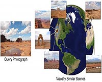 Pittsburgh PA (SPX) Jun 20, 2008 Researchers at Carnegie Mellon University have devised the first computerized method that can analyze a single photograph and determine where in the world the image likely was taken. It's a feat made possible by searching through millions of GPS-tagged images in the Flickr online photo collection. The IM2GPS algorithm developed by computer science graduate student James Hays and Alexei A. Efros, assistant professor of computer science and robotics, doesn't attempt to scan a photo for location clues, such as types of clothing, the language on street signs, or specific types of vegetation, as a person might do. Rather, it analyzes the composition of the photo, notes how textures and colors are distributed and records the number and orientation of lines in the photo. It then searches Flickr for photos that are similar in appearance. "We're not asking the computer to tell us what is depicted in the photo but to find other photos that look like it," Efros said. "It was surprising to us how effective this approach proved to be. Who would have guessed that similarity in overall image appearance would correlate to geographic proximity so well?" Hays and Efros found they could accurately geolocate the images within 200 kilometers for 16 percent of more than 200 photos in their test set - up to 30 times better than chance. And even if their algorithm failed to identify the specific location, they often found that it could narrow the possibilities, such as by identifying the locale as a beach or a desert. "It seems there's not as much ambiguity in the visual world as you might guess," said Hays, who will present the research at the IEEE Computer Society Conference on Computer Vision and Pattern Recognition June 24-26 in Anchorage, Alaska. "Estimating geographic information from images is a difficult, but very much a doable, computer vision problem." Identifying the locale of a photo could enhance image search techniques, making them less dependent on captions or associated text. A computer system for geolocating photos could be useful in finding family photos from a specific trip and in some forensic applications. Determining the location of photos also makes it possible to combine them with geographic data bases related to climate, population density, vegetation, topography and land use. Knowing the locale also can aid in such computer vision tasks as object identification, Hays said. If a computer recognizes that a photo likely was taken in Japan, for instance, the computer will have a better idea of what a taxicab should look like. Hays said many online photos have some sort of geographic label, but these human descriptions can often be incorrect, or overly broad, such as a photo of the Grand Canyon labeled "U.S." The growing number of online photos that have GPS tags, by contrast, are unambiguous regarding their location, even though many are photos of rooms, people or events such as birthday parties that are useless for geolocation tasks. By using photos with both geographic keywords and GPS coordinates, Hays and Efros were able to find more than six million photos that were useful and accurately geolocated. The IM2GPS algorithm readily located photographs of such landmarks as the Cathedral of Notre Dame in Paris. More surprisingly, it was able to recognize that a narrow street in Barcelona was typical of Mediterranean villages, rather than an American alleyway. But some odd matches also occurred. The architecturally unique Sydney Opera House seemed to the computer to be similar to a hotel in Mississippi as well as a bridge in London. A shot of the Eiffel Tower at dusk was matched to other Eiffel Tower shots, but also to San Francisco's Coit Tower and New York's Statue of Liberty, both shot at dusk. One reason for this confusion, Hays explained, is that the algorithm is not designed to recognize specific objects so much as it is to recognize geographic areas. For instance, an image of Utah's Monument Valley caused the IM2GPS algorithm to successfully retrieve a number of other images from Monument Valley and the American Southwest, rather than images of a specific rock formation. Community Email This Article Comment On This Article Related Links Carnegie Mellon University GPS Applications, Technology and Suppliers