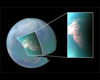 Pasadena CA (SPX) Jun 04, 2009 Cloud chasers studying Saturn's moon Titan say its clouds form and move much like those on Earth, but in a much slower, more lingering fashion. Their forecast for Titan's early autumn - warm and wetter. Scientists with NASA's Cassini mission have monitored Titan's atmosphere for three-and-a-half years, between July 2004 and December 2007, and observed more than 200 clouds. They found that the way these clouds are distributed around Titan matches scientists' global circulation models. The only exception is timing - clouds are still noticeable in the southern hemisphere while fall is approaching. "Titan's clouds don't move with the seasons exactly as we expected," said Sebastien Rodriguez of the University of Paris Diderot, in collaboration with Cassini visual and infrared mapping spectrometer team members at the University of Nantes, France. "We see lots of clouds during the summer in the southern hemisphere, and this summer weather seems to last into the early fall. It looks like Indian summer on Earth, even if the mechanisms are radically different on Titan from those on Earth. Titan may then experience a warmer and wetter early autumn than forecasted by the models." On Earth, abnormally warm, dry weather periods in late autumn occur when low-pressure systems are blocked in the winter hemisphere. By contrast, scientists think the sluggishness of temperature changes at the surface and low atmosphere on Titan may be responsible for its unexpected warm and wet, hence cloudy, late summer. As summer changes to fall at the equinox in August 2009, Titan's clouds are expected to disappear altogether. But, circulation models of Titan's weather and climate predict that clouds at the southern latitudes don't wait for the equinox and should have already faded out since 2005. However, Cassini was still able to see clouds at these places late in 2007, and some of them are particularly active at mid-latitudes and the equator. Titan is the only moon in our solar system with a substantial atmosphere, and its climate shares Earth-like characteristics. Titan's dense, nitrogen-methane atmosphere responds much more slowly than Earth's atmosphere, as it receives about 100 times less sunlight because it is 10 times farther from the sun. Seasons on Titan last more than seven Earth years. Scientists will continue to observe the long-term changes during Cassini's extended mission, which runs until the fall of 2010. Cassini is set to fly by Titan on May 6. Share This Article With Planet Earth