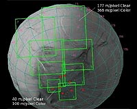 Pasadena CA (SPX) Oct 30, 2008 Following on the heels of the spectacularly successful 'skeet shoot' maneuver on August 11, Cassini will use the same technique to obtain high resolution images of the south polar region of Enceladus as it flies within 171 km of the icy moon on October 31. Earlier this month on October 9, Cassini came within 25 km (15 miles) of the surface and then flew through the icy plumes emanating from the moon's south pole at an altitude of 185 km (116 miles). This time, as on August 11, ISS and the rest of the optical remote sensing (ORS) instruments will be aimed at the surface during closest approach in order to capture high-resolution views of active vent regions. Cassini will follow essentially the same trajectory (green line at right) as it did during all previous flybys in 2008, approaching from the north, passing behind the nightside of Enceladus, and receding with a view of the south polar terrain before the moon slips into Saturn's shadow for approx. 2.5 hours. Closest approach occurs at 17:14:51 UTC on October 31, 2008, approximately 171 km (107 miles) above a point just below the equator on the leading hemisphere (latitude 28 S, longitude 93 W). The detailed schedule of events of flyby activities is described below. Flyby encounter observations of Enceladus begin on October 31 at 8:35:51 UTC, 8.5 hours prior to closest approach when Cassini begins a 30-minute long turn to aim its ORS instruments at the icy moon. For the next three hours, Cassini's Ultraviolet Imaging Spectrometer (UVIS) will be "prime", meaning that the spacecraft pointing will be optimized to meet the scientific objectives of that instrument. The other ORS instruments (ISS, Composite Infrared Spectrograph CIRS, and Visual and Infrared Mapping Spectrometer VIMS) are all aligned so even though they do not control spacecraft pointing at this time, for the most part they will be pointed at Enceladus and making measurements simultaneously as "ride along" observations. UVIS will determine the distribution of volatiles in the vicinity of Enceladus, looking for any changes in their quantity or composition as a result of plume activity. These maps of the space around Enceladus will search for the signature of oxygen, a product of the dissociation of the water molecules coming from Enceladus' plume. At the end of this observation, Enceladus is approx. 290,000 km away, and Cassini is directly above latitude 63 N, longitude 46 W, staring at northern portions of the sunlit trailing hemisphere. ISS will obtain multispectral images of the northern cratered terrains at a phase angle of 110 degrees and resolution of 2 km/pixel (1.25 miles/pixel) in the Narrow Angle Camera (NAC). At 12:14:51 UTC, 5 hours prior to closest approach, VIMS will be obtaining spectra of the northern cratered terrains during an hour-long observation. During previous flybys, VIMS detected carbon dioxide, hydrogen peroxide, and light organics near the south pole. This observation will characterize the surface composition of the northern, cratered terrains. In addition VIMS can also measure the crystallinity, temperature, and size of particles on Enceladus' surface. At the end of this hour-long observation, Enceladus will be 235,000 km above latitude 63 N, longitude 56 W. All of the other ORS instruments will ride along, and ISS will obtain a single clear filter (CL1 CL2) image as well as images at polarization angles of 0, 60, and 120 degrees in the ultraviolet (UV3) and green (GRN) filters at a phase angle of 109 degrees and resolution of 1.5 km/pixel (0.9 miles/pixel). Following the VIMS observation, at 13:14:51, four hours prior to closest approach, CIRS will observe the northern cratered terrains for nearly 3 hours. ISS will obtain four clear filter images in its Wide Angle Camera (WAC) at various times throughout this observation when CIRS is using its long-wavelength focal plane (FP1) which places Enceladus out of the NAC field of view. Near the end of this observation the spacecraft will be pointed such that the sunlit portion of Enceladus' northern trailing hemisphere nearly fills the entire field of view of the NAC. ISS will acquire several images in the clear (CL1 CL2), UV3, GRN, red (RED), blue (BL1), and near-infrared (IR1 and IR3) filters in addition to images at polarization angles of 0, 60, and 120 degrees in the UV3, GRN, and methane (MT2) filters. The clear filter image at 530 meters/pixel (580 yds/pixel) of the cratered terrains on the trailing side of the north pole will be useful for limb topography and satellite shape measurements and can also be used with similar views acquired during previous flybys to create stereo images and digital terrain maps. At 16:04:51 UTC, one hour and ten minutes prior to closest approach, VIMS will be prime once again. ISS ride along and obtain images in the CLR, UV3, GRN, IR1 and IR3 filters at a resolution of 420 meters/pixel (460 yds/pixel). In these ride-along observations, the spacecraft is directly above the nightside of Enceladus, yet sunlit portions of the northern cratered terrains will fall within the ISS NAC field of view. Next, Cassini will turn to a staging attitude to set up the second 'skeet shoot' of its Equinox Mission. During the initial phase of the high-resolution imaging sequence, or skeet shoot, the spacecraft will be so close to Enceladus and moving so quickly that it is not physically possible for it to target and track with stability any specific geologic feature on the icy satellite surface. A special spacecraft maneuver was implemented for this and the August 11 flyby so that Cassini's ORS platform will at first point ahead of Enceladus while the spacecraft is spun at its fastest speed in the direction that the moon moves across the sky. When Enceladus' apparent motion eventually overtakes the spacecraft spin and passes in front of the ISS cameras, the relative motion of the camera aimpoint across the surface of Enceladus will be briefly matched well enou