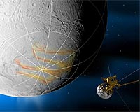 Pasadena CA (SPX) Aug 08, 2008 Fractures, or "tiger stripes," where icy jets erupt on Saturn's moon Enceladus will be the target of a close flyby by the Cassini spacecraft on Monday, Aug. 11. Cassini will zoom past the tiny moon a mere 50 kilometers (30 miles) from the surface. Just after closest approach, all of the spacecraft's cameras -- covering infrared wavelengths, where temperatures are mapped, as well as visible light and ultraviolet -- will focus on the fissures running along the moon's south pole. That is where the jets of icy water vapor emanate and erupt hundreds of miles into space. Those jets have fascinated scientists since their discovery in 2005. "Our main goal is to get the most detailed images and remote sensing data ever of the geologically active features on Enceladus," said Paul Helfenstein, a Cassini imaging team associate at Cornell University in Ithaca, NY. "From this data we may learn more about how eruptions, tectonics, and seismic activity alter the moon's surface. We will get an unprecedented high-resolution view of the active area immediately following the closest approach." Seeing inside one of the fissures in high resolution may provide more information on the terrain and depth of the fissures, as well as the size and composition of the ice grains inside. Refined temperature data could help scientists determine if water, in vapor or liquid form, lies close to the surface and better refine their theories on what powers the jets. Imaging sequences will capture stereo views of the north polar terrain, and high resolution images of the south polar region will begin shortly after closest approach to Enceladus. The image resolution will be as fine as 7 meters per pixel (23 feet) and will cover known active spots on three of the prominent "tiger stripe" fractures. In addition to mapping the moon's surface in visible light as well as infrared and ultraviolet light, Cassini will help determine the size of the ice grains and distinguish other elements mixed in with the ice, such as oxygen, hydrogen, or organics. "Knowing the sizes of the particles, their rates and what else is mixed in these jets can tell us a lot about what's happening inside the little moon," said Amanda Hendrix, Cassini ultraviolet imaging spectrograph team member at NASA's Jet Propulsion Laboratory, Pasadena, Calif. Other instruments will measure the temperatures along the fractures, which happen to be some of the hottest spots on the moon's surface. "We'd like to refine our numbers and see which fracture or stripe is hotter than the rest because these results can offer evidence, one way or the other, for the existence of liquid water as the engine that powers the plumes," said Bonnie Buratti of JPL, team member on Cassini's visual and infrared mapping spectrometer. Cassini discovered evidence for the geyser-like jets on Enceladus in 2005, finding that the continuous eruptions of ice water create a gigantic halo of ice and gas around Enceladus, which helps supply material to Saturn's E-ring. This marks Cassini's second flyby of Enceladus this year. During Cassini's last flyby of Enceladus in March, the spacecraft snatched up precious samples and tasted comet-like organics inside the little moon. Two more Enceladus flybys are coming up in October, and they may bring the spacecraft even closer to the moon. The Oct. 9 encounter is complimentary to the March one, which was optimized for sampling the plume. The Oct. 31 flyby is similar to this August one, and is again optimized for the optical remote sensing instruments. Community Email This Article Comment On This Article Related Links Cassini mission Explore The Ring World of Saturn and her moons Jupiter and its Moons The million outer planets of a star called Sol News Flash at Mercury