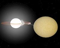 Most Extreme White Dwarf Binary System FoundWarwick, UK (SPX) Mar 10, 2010 An international team of astronomers, including Professor Tom Marsh and Dr Danny Steeghs from the University of Warwick, have shown that the two stars in the binary HM Cancri definitely revolve around each other in a mere 5.4 minutes. This makes HM Cancri the binary star with by far the shortest known orbital period. It is also the smallest known binary. The binary system is no larger than ... read more |