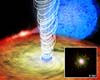 Cambridge, MA (SPX) Jun 29, 2007NASA's Chandra X-ray Observatory has revealed an X-ray jet blasting away from a neutron star in a binary system. This discovery may help astronomers understand how neutron stars as well as black holes can generate powerful beams of relativistic particles. The jet was found in Circinus X-1, a system where a neutron star is in orbit around a star several times the mass of the Sun, about 20,000 light years from Earth. A neutron star is an extremely dense remnant of an exploded star consisting of tightly packed neutrons. |