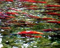 Pacific sockeye salmon return in record numbersVancouver, Canada (AFP) Sept 9, 2010 After years of scarcity, the rivers of the US and Canadian Pacific Northwest are running red, literally, with a vast swarm of a salmon species considered to be in crisis. Sockeye salmon, whose stocks ran perilously low last year, are gushing in record numbers from the Pacific Ocean toward their spawning grounds far inland. Since mid-August, in a torrent expected to last through early Oct ... read more |