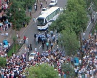 After the violence, China hits Urumqi with propaganda blitzUrumqi, China (AFP) July 17, 2009 Two open military trucks circled the streets of Xinjiang's capital, on each a soldier gripped a sniper rifle perched on the cab, others lined the side wielding AK-47s. But the centrepiece of the show of force was between the vehicles, a van mounted with loudspeakers blasting out pronouncements on Urumqi's July 5 unrest that left at least 192 dead in China's worst ethnic violence in decades. ... read more |