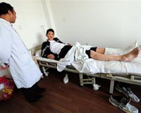 Tianjin, China (AFP) April 26, 2009 Zhao Liang needs two beds to rest his 2.46-metre (8ft, 1in) frame, one of life's inconveniences for the Chinese giant who could become officially known as the world's tallest man. The 27-year-old is 10 centimetres (four inches) taller than the current holder of the title, another Chinese man, but the media-wary Zhao has not yet decided whether he wants the Guiness Book of Records to officially ratify him. Lying on a makeshift iron bed in a hospital in the northern city of Tianjin after an operation on his foot, Zhao seems almost bored with his sudden rise to fame. The hospital was forced to put together two standard-sized iron beds to accommodate the giant from central Henan province whose parents are of average height, but he still has trouble fitting his large frame onto the narrow mattresses. His shoulders, hands, legs and feet are all massive, and he finds it difficult to find clothes and shoes to fit. Weighing 155 kilogrammes (341 pounds), Zhao squeezes into European size 56 (US size 20) shoes, and has to order his sports shoes from Japan or the United States. He is huge even compared with China's most famous tall man, Yao Ming, the basketball star who plays for the Houston Rockets in the American NBA and stands 2.29 metres tall. Asked about Zhao's clothes, Wang Keyun, his 1.68-metre-high mother, laughs and unravels a pair of his trousers -- they reach up to her face when she stands up. "For my son, everything is always custom-made, and when he was young I would make his clothes myself," she said. Zhao has also been forced to confront more serious inconveniences, which he describes with few words. "When I was young, I stayed at home because of my height, and I did not play with others as they were small and I was tall," he said. Zhao, whose parents are farmers, left school when he was 14, and worked in construction and as a labourer. But an artistic troupe noticed him in 2006 and employed him as a musician, playing the hulusi, a traditional Chinese wind instrument. Things changed for the better and he now has friends, he said, although he still does not have a girlfriend -- a fact that concerns his mother. "I am really worried about that," she said. However Zhao's reluctant rise to fame could have a silver lining and perhaps encourage him to seek official status with the Guinness Book of Records as the world's tallest man. The current holder of the title -- 2.36-metre herdsman Bao Xishun from the steppes of Inner Mongolia, launched a highly public search for a bride three years ago. After a lifetime as a bachelor, Bao, aged in his 50s, heard back from more than 20 interested women and married one of them, who was half his height, after a courtship of just one month in 2007. And while Zhao may not appreciate the media attention, doctors in the Tianjin hospital are proud of having such a surprise celebrity client. They are quick to point out that the operation on Zhao's left foot, damaged in a basketball fall when he was 17, was successful and free. The hospital has pampered the young man -- his room is spartan, but an extra bed has been added for his mother, and he has his own living room and bathroom. The medics are also the reason for his sudden climb to fame because Zhao was just an anonymous tall man in the world's most populous nation until they measured him and spread the word about his height. Share This Article With Planet Earth