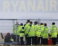 London (AFP) Dec 8, 2008 Environmental activists cut through a fence and took over a runway at London's third main airport on Monday forcing the cancellation of more than 50 flights. Stansted Airport closed its only runway for about three hours, re-opening around 0800 GMT after police arrested 57 people who had breached the perimeter fence using bolt-cutters under cover of darkness. The protest prompted budget Irish airline Ryanair, which cancelled more than 50 flights, to call for an urgent review of security at the airport which serves as its main hub. The Plane Stupid protest group was demonstrating against the British government's decision to allow the airport to build a second runway. One activist, Lily Kember, 21, said protesters entered the airport, erected fencing around themselves and were able to sit on a site near where airplanes taxi before taking off and landing. "Being arrested is a terrifying prospect, but not nearly as terrifying as the threat of climate change," she said. Stansted's commercial manager Nick Barton said the activists had driven up to the airport in an "old fire engine". "It probably didn't look out of place in all honesty as there are a number of emergency services vehicles around the site," he said. "They managed to cut through the fence. As soon as they were through, they ran through the gap they had created and brought the fence panels to barricade themselves in." He said airport security staff had prevented the activists from reaching the runway. "Our site is 2,000 acres in size and the perimeter is enormous," he said. "But they were stopped well short of the runway." He said he hoped the airport would be able to "recover quite well" from the impact of the protest, but admitted it would cause delays throughout the day. Ryanair said it had to cancel 56 flights in and out of Stansted, including services to Dublin, Prestwick in Scotland, Frankfurt, Genoa, Oslo and Berlin. The Irish budget airline said it was calling for an investigation into security at the airport. "We need to know what measures the BAA is putting in place to prevent" such security failures, said a spokesman. One passenger affected by the disruption, Lainey Mace, from Norfolk in eastern England, said the protesters had won little support among travellers. She said: "They have caused great inconvenience. "It is very worrying that protesters were able to get either close to the runway or on the runway." Plane Stupid said in a statement that aviation was the fastest-growing source of emissions and already contributed to at least 13 percent of Britain's carbon emissions. It said the disruption to flights would prevent "the release of thousands of tonnes of greenhouse gas emissions into the atmosphere." The group has staged other high-profile demonstrations against the expansion of London airports. Its members climbed onto the roof of the Houses of Parliament in February to protest against proposals to add a third runway at Heathrow, which is already one of the busiest airports in the world. Share This Article With Planet Earth
