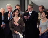 Seoul (AFP) Aug 5, 2009 Former president Bill Clinton flew home from North Korea Wednesday after winning the release of two US journalists, as the hardline communist state savoured its highest-level American visit in almost a decade. Laura Ling and Euna Lee, who faced 12 years' hard labour before they were pardoned by North Korean leader Kim Jong-Il, were instead headed for a reunion with overjoyed family members following Clinton's surprise mission. Clinton's plane was expected to reach Los Angeles early Wednesday local time. A senior US official said the journalists were in "very good health" after 140 days in detention. "We are counting the seconds to hold Laura and Euna in our arms," relatives said in a statement thanking Clinton and the current administration. "This is one of the happiest days of my life," Laura Ling's father Doug told CNN. "I'm very thankful for the government for doing all they can to gain the release." Despite months of high tensions sparked by the North's latest nuclear and missile tests and United Nations sanctions, Clinton received a warm and well publicised welcome Tuesday. "Leading papers today carry a photo-accompanied report that leader Kim Jong-Il met with former US President Bill Clinton on a visit to the DPRK (North Korea)," the official Korean Central News Agency (KCNA) reported. The press also publicised a dinner in Clinton's honour, which according to KCNA "proceeded in a cordial atmosphere." Striking a markedly positive tone, the agency said Clinton's meetings "reached a consensus of views on seeking a negotiated settlement" of issues dividing the two countries." TV journalists Ling, 32, and Lee, 36, were arrested while reporting near North Korea's border with China. They were sentenced in June to 12 years of hard labour for illegal entry and "hostile acts." Kim agreed to pardon the reporters after Clinton "expressed words of sincere apology" for their "hostile acts", KCNA reported late Tuesday. After Kim granted his special pardon, Clinton "courteously conveyed a verbal message of US President Barack Obama expressing profound thanks for this and reflecting views on ways of improving the relations between the two countries," the agency said. The White House portrayed the mission as a purely private one and denied there was any message from Obama. A senior US official said separately that Clinton had offered no such apology. US Secretary of State Hillary Clinton, wife of the former leader, said during a visit to Africa she was "very happy and relieved" the reporters had been freed. "The measure taken to release the American journalists is a manifestation of the DPRK's humanitarian and peace-loving policy," KCNA added. Clinton sent his own secretary of state Madeleine Albright to Pyongyang in 2000 for a meeting with leader Kim. The harsh sentences on the reporters had soured relations already strained by the North's atomic test in May, multiple missile launches and its decision to quit six-nation nuclear disarmament talks. US and South Korean officials say Kim, 67, is staging a show of strength while he puts in place a succession plan involving his youngest son. Kim reportedly suffered a stroke last August and appears notably older, thinner and frailer in recent photos -- including those taken with Clinton. Seoul analysts said the regime is clearly milking the trip for propaganda purposes, but the visit could also pave the way for bilateral dialogue and an easing of tensions. "This is a win-win game," said Cheong Seong-Chang of the Sejong Institute think-tank, noting the US secured freedom for its reporters while Kim proved he is still in control despite his health problems. "North Korea has no more cards left to play after its nuclear test and missile launches," Cheong told AFP. "It may think it's time to come out for dialogue, and Clinton's trip was timely. "Both sides may have reached a consensus that tensions should not escalate further." Dongguk University professor Koh Yu-Hwan called the outcome of the trip "generally positive" for both sides, even though North Korea gained more "by using it for political propaganda." China, the North's closest ally, welcomed the release. "The relevant issue has had an appropriate solution. We welcome this," the foreign ministry said in a statement. Share This Article With Planet Earth