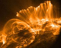 Greenbelt MD (SPX) Dec 07, 2007 Imagine you are sitting around a campfire. Move closer to the fire, and you get hotter. Move away, and you get cooler. Pretty basic, right? Well, the closest star, our sun, doesn't seem to be getting this. As you move away from the solar surface, into the sun's outer atmosphere, the corona, it actually gets a lot hotter before it cools off. The solar surface is about 10,000 degrees Fahrenheit, while temperatures in the corona soar to millions of degrees. Although scientists have some ideas of what might heat the solar corona, there is no universally accepted explanation yet. Many mechanisms might contribute to coronal heating; a few leading contenders are magnetic reconnection (when twisted magnetic fields break apart and rejoin); sound waves produced in the sun's churning outer layer; and waves of magnetic energy called Alfven waves. Alfven waves were a long-time suspect in the coronal heating mystery, but till now their presence in the solar corona was only circumstantial. "With help from the Hinode spacecraft, we now have irrefutable evidence of Alfven waves moving along coronal loops," said Dr. Leon Ofman, a solar physicist at NASA's Goddard Space Flight Center in Greenbelt, Md. Coronal loops are fountains of plasma (a gas made up of electrically charged particles) trapped by the sun's magnetic fields. Coronal loops look like giant arches sticking out of the solar surface, and many are large enough to span several Earths. An Alfven wave is a vibration of a magnetic field line that carries the charged particles in plasma along with it. "In other words, it is similar to a vibrating string with beads," says Ofman. "This type of wave was first proposed to exist in 1942 by Hannes Alfven, a Swedish scientist who won the Nobel Prize in Physics in 1970. Alfven waves were later found to exist in laboratory experiments with magnetized plasma, and in space," said Ofman. Alfven waves can be caused by an impact to a magnetic field. In the case of the new Hinode observations, they were caused by an explosion of magnetic energy, called a solar flare, which immediately preceded the observations, according to Ofman. "Hinode detected the Alfven waves with its Solar Optical Telescope instrument. This is a high-resolution telescope in space that is sensitive to the emission of relatively cool material that can fill coronal loops due to eruptions caused by a flare. A movie made from a sequence of images showed a clear pattern of periodic motion of coronal loops. The loops vibrated side-to-side, which is typical for an Alfven wave. The relation between the period of the vibrations and the parameters of the loop (its length, density, and temperature) further reinforced the conclusion that what we see is really an Alfven wave," said Ofman. According to Ofman, Alfven waves could heat the solar corona by their vibrations: "As the magnetic field lines vibrate, they experience friction with the surrounding magnetized material. The friction results in heating of the corona and damping of the wave motions." The next step to understand the sun's mysteriously hot atmosphere is to discover how much Alfven waves contribute to coronal heating, to see whether it's the dominant force or if the other possible heating mechanisms play major roles. Ofman will present these results in the upcoming American Geophysical Union meeting in San Francisco, Calif. His co-author is Dr. Tongjiang Wang, a postdoctoral researcher at the Catholic University of America, Washington, who works at Goddard. This research is part of a series of papers about observations of Alfven waves with Hinode. Hinode (formerly Solar B) is a mission to investigate the interaction between the sun's magnetic field and its corona. It is a collaboration among the space agencies of Japan, the United States, the United Kingdom, and Europe. Community Email This Article Comment On This Article Related Links NASA Goddard Space Centre Solar Science News at SpaceDaily