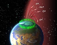 Paris, France (ESA) Jan 15, 2009 For the first time, it has been possible to quantify the amount of hydrogen naturally escaping each year from the Earth's atmosphere. This hydrogen outflow has been shown to be of the order of thousands of tons. The result was obtained by applying a new analytical method to a unique set of electric field data collected by the European Space Agency's Cluster mission. The escaping hydrogen has previously been invisible to classical particle detectors on satellites due to its very low energy. Quantifying the loss processes of our atmosphere is important not only for providing a better understanding of the physical phenomena in near-Earth space, but also for understanding the evolution of atmospheres on other planets, such as Venus or Mars. Prior to the space age, scientists believed that the magnetic environment of the Earth was mainly filled with particles of solar origin, forming an immense comet-like cloud of electrified gas surrounding our planet. Later, observations made by scientific satellites revealed that hydrogen, oxygen and helium ions can escape from the Earth's upper atmosphere into space from regions near the Earth's poles (Figure 1). These escaping ions will be lost to the solar wind or trapped in the plasma sheet - the central region of the magnetic tail. There, they can undergo acceleration processes and, in a kind of boomerang effect, return back to Earth with higher energy, thus posing a hazard to satellites and astronauts. Last year, a report based on Cluster data revealed the dominant mechanism driving the escape (see Cluster examines Earth-escaping ions). However, to date, an accurate estimation of the annual amount of matter leaking out into space has remained elusive. The reason is actually simple. Most of these ions are too cold to be observed by scientific satellites, since the potential of a sunlit spacecraft exceeds the equivalent energy of these ions (~ 1 eV). The low-energy ions are thus repelled by the spacecraft and cannot even reach the onboard particle detectors. PhD student Erik Engwall from Uppsala University and the Swedish Institute of Space Physics (Uppsala, Sweden) challenged this question using electric field data sets measured by two instruments, which use different techniques, on the Cluster satellites. When operated in a cold, flowing plasma, these two instruments show large differences, since one of them is greatly affected by the presence of such an environment. While first seen as a disturbance or interference of the measurements, Engwall and colleagues have developed a new method taking advantage of these differences to reveal the presence of cold ions (mostly hydrogen at high altitudes) and to determine their flow velocity. The outcome of this new data analysis method applied to Cluster data (see Figure 2) is detailed in the January 2009 edition of Nature Geoscience . "Not only does our new method show the presence of cold ions in the distant tail lobes, but our quantitative estimation shows that these cold ions dominate in both flux and density. The so far invisible cold plasma outflows constitute a major part of the net loss of matter from the Earth", concludes Engwall, the lead author of this study. "This scientific discovery shows once again a clear advantage of measuring key physical parameters on the same satellite using different experimental means", says Philippe Escoubet, Cluster project scientist at the European Space Agency. Reference publication: Engwall, E., et al., (2009), Earth's ionospheric outflow dominated by hidden cold plasma, Nature Geoscience, January 2009. DOI:10.1038/ngeo387 Share This Article With Planet Earth