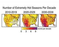 Heat Waves Commonplace In The US By 2039Stanford CA (SPX) Jul 13, 2010 Exceptionally long heat waves and other hot events could become commonplace in the United States in the next 30 years, according to a new study by Stanford University climate scientists. "Using a large suite of climate model experiments, we see a clear emergence of much more intense, hot conditions in the U.S. within the next three decades," said Noah Diffenbaugh, an assistant professor of ... read more |