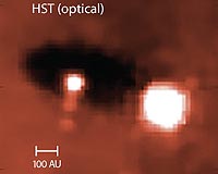 A Pair Of Solar Systems In The MakingManoa HI (SPX) Jul 06, 2009 Two University of Hawaii at Manoa astronomers have found a binary star-disk system in which each star is surrounded by the kind of dust disk that is frequently the precursor of a planetary system. Doctoral student Rita Mann and Dr. Jonathan Williams used the Submillimeter Array on Mauna Kea, Hawaii to make the observations. A binary star system consists of two stars bound together by ... read more |