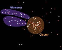 Pasadena CA (JPL) Jan 29, 2008 New observations from NASA's Spitzer Space Telescope suggest that galaxies prefer to raise stars in cosmic suburbia rather than in "big cities." Galaxies across the universe reside in cosmic communities, big and small. Large, densely populated galactic communities are called galaxy clusters. Like big cities on Earth, galaxy clusters are scattered throughout the universe, connected by a web of dusty "highways" called filaments. While thousands of galaxies live within the limits of a cluster, smaller galactic communities are sprinkled along filaments, creating celestial suburbs. Over time, astronomers suspect that all galactic suburbanites will make their way to a cluster by way of filaments. For the first time, Spitzer's supersensitive eyes have caught an infrared glimpse of several galaxies traveling along two filamentary roads into a galaxy cluster called Abell 1763. "This is the first time we've ever seen a filament leading into a cluster with an infrared telescope," says Dario Fadda, of the Herschel Science Center, which is located at the California Institute of Technology in Pasadena, Calif. "Our observations show that the fraction of starburst galaxies in the filaments is more than double the number of starburst galaxies inside the cluster region," he adds. According to Fadda, clusters and the filaments that connect them are among the largest structures in the cosmos. To see them, astronomers need instruments that can map large areas of sky and have the sensitivity to resolve individual galaxies. Luckily, instruments aboard Spitzer can do both. Using the telescope's multiband imaging photometer, Fadda and his colleagues saw structures spanning 23 million light-years. They used the observatory's infrared array camera to collect a census of each galaxy's star formation and used a ground-based telescope at the Kitt Peak National Observatory near Tucson, Ariz., to determine which galaxies belonged to the cluster and surrounding filaments. Ultimately, Fadda found that galaxies in the filaments form stars at a higher rate than their cluster counterparts. "The new Spitzer findings will provide valuable insights into how galaxies grow and change as they leave cosmic suburbia for the big cities," says Fadda. He notes that future infrared missions will be able to follow in Spitzer's footsteps and study how filaments and clusters affect the growth of galaxies in greater detail. One such mission is the European Space Agency's Herschel Space Telescope, which has significant NASA involvement. His paper on this topic has been accepted for publication in Astrophysical Journal Letters. Co-authors on the paper include Andrea Biviano of the INAF/Osservatorio Astronomico di Trieste, Italy; Florence Durret of Institut d'Astrophysique de Paris, France; and Francine Marleau and Lisa Storrie-Lombardi of the Spitzer Science Center, Pasadena, Calif. Community Email This Article Comment On This Article Related Links http://www.spitzer.caltech.edu/spitzer Spitzer at NASA Stellar Chemistry, The Universe And All Within It