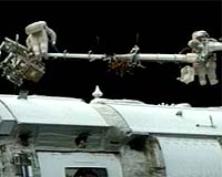 Houston TX (SPX) Jun 06, 2007 Two International Space Station cosmonauts will begin a spacewalk of a little over five hours from the Pirs docking compartment airlock about 10:30 a.m. EDT Wednesday. They will install a section of Ethernet cable on the Zarya module, install additional Service Module Debris Protection (SMDP) panels on Zvezda, and deploy a Russian scientific experiment. Five SMDP panels were installed by station Commander Fyodor Yurchikhin and Flight Engineer Oleg Kotov on May 30. During that 5-hour, 25-minute spacewalk they also rerouted a Global Positioning System antenna cable. On Wednesday they will install 12 additional panels. They also will install the Ethernet cable on the Zarya module and a Russian experiment called Biorisk on Pirs. Yurchikhin again will be the lead spacewalker, EV1, and wear the Russian Orlan spacesuit with red stripes. Kotov, EV2, will wear the suit with blue stripes. The Wednesday spacewalk will be the second for both. After leaving the Pirs airlock the cosmonauts will move forward with a ribbon cable reel holding the Ethernet cable. They will install that section of cable on Zarya. It is the first of two sections. The second will be installed later. Once both are in place and functioning, computer capabilities of the station should be increased considerably. After the cable installation, they will move aft to the forward end of the Zvezda Service Module. There they will remove one of two SMDP bundles remaining on the "Christmas Tree," an adaptor that initially had three bundles attached. It was stowed at the Unity Node on Pressurized Mating Adaptor No. 3 (PMA-3). Yurchikhin maneuvered Kotov, on the end of the Strela manually operated crane, to the Christmas Tree during the first spacewalk. Kotov retrieved it and stowed it on Zvezda, where they installed five SMDP panels. The aluminum panels vary in size but are about an inch thick. They typically measure about 2 by 3 feet and weigh 15 to 20 pounds. Initially, the spacewalkers will tether them to handrails. Yurchikhin and Kotov will open the first bundle and install its panels on Zvezda's conical section, the area between Zvezda's large and small diameters, to join the five they installed Wednesday. Another six panels had been bolted into place there in 2002. Once that is done, they'll open the remaining bag and install its six panels. Six SMDP panels were installed during an Aug. 16, 2002, spacewalk by Expedition 5 Commander Valery Korzun and Flight Engineer Peggy Whitson. Those panels were delivered to the station by Endeavour during STS-111 in June 2002. The remaining three bundles and their adaptor were delivered by Discovery during STS-116 last December and attached to PMA-3 by spacewalkers Bob Curbeam and Sunita Williams. With the installation of the SMDP panels completed, Yurchikhin and Kotov will move back to Pirs, where they'll stow tools and pick up the Russian scientific experiment, called Biorisk. It looks at the effects of microorganisms on structural materials used in space. They will attach it to the outside of Pirs. Then they'll return to the Pirs airlock. Hatch closure marking the end of the spacewalk is scheduled for a little after 3:40 p.m. Flight Engineer Suni Williams will serve as intravehicular officer for the second spacewalk, as she did for the first. Community Email This Article Comment On This Article Related Links ISS Station at NASA Station and More at Roscosmos S.P. Korolev RSC Energia Watch NASA TV via Space.TV Space Station News at Space-Travel.Com