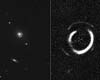 Santa Barbara CA (SPX) Jan 14, 2008NASA's Hubble Space Telescope has revealed a never-before-seen optical alignment in space: a pair of glowing rings, one nestled inside the other like a bull's-eye pattern. The double-ring pattern is caused by the complex bending of light from two distant galaxies strung directly behind a foreground massive galaxy, like three beads on a string. |