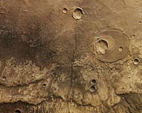 Paris, France (ESA) Jul 27, 2009 The Mars Express High Resolution Stereo Camera imaged a region close to Ma'adim Vallis, one of the largest canyons on Mars, finding craters, lava flows and tectonic features. After Valles Marineris, Ma'adim Vallis is one of the largest canyons on Mars. The region, lying south-east of Ma'adim Vallis, was imaged on 24 December 2008. The pictures are centred at about 29 degrees S and 182 degrees E and have a ground resolution of 15 m/pixel. Ma'adim Vallis is located between the volcanic region of Tharsis, which harbours four volcanoes, including the largest in the Solar System, and the Hellas Planitia impact basin. The canyon, 20 km wide and 2 km deep, originates in the southern highlands close to the 'dichotomy boundary' and ends in Gusev crater. The dichotomy boundary is a narrow region separating the cratered highlands, located mostly in the southern hemisphere of Mars, from the northern hemisphere's lowland plains. The images cover 138 x 70 km, roughly the size of Cyprus. A sharp boundary is visible in the centre, dividing dark material to the west and light material to the east. Scientists suspect that this feature is most likely the edge of a basaltic lava flow. Wrinkle ridges are clearly visible on the surface of the lava flow. They were most likely formed by compressive forces. To the north is a crater, almost 20 km in size. It is partially filled with lava, which shows that it must have formed before the lava set in. The smaller, 7 km crater at the southern edge of the larger crater must have formed later because it has an ejecta blanket that may have formed from material rich in water-ice ejected during impact. A linear feature, more than 200 km long, divides the image almost in the centre. It is most likely a trough associated with the uprising of the Tharsis volcanic region in the north-east. The uprising may have created a lot of stress in the crust which was released when the fracture zones formed, creating the trough. The colour scenes have been derived from the three HRSC-colour channels and the nadir channel. The perspective views have been calculated from the digital terrain model derived from the stereo channels. The anaglyph image was calculated from the nadir and one stereo channel. The black and white high-resolution images were derived from the nadir channel, which provides the highest detail of all channels. Share This Article With Planet Earth