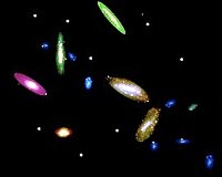 Tel Aviv, Israel (SPX) Oct 21, 2008 Despite thousands of years of research, astronomers know next to nothing about how the universe is structured. One strong and accepted theory is that large galaxies are clustered together on structures similar to giant soap bubbles, with tinier galaxies sprinkled on the surface of this "soapy" layer. New observations from Tel Aviv University are giving new strength to this theory. A team led by Dr. Noah Brosch, Director of the Tel Aviv University-owned Wise Observatory, is the first in the world to uncover what they believe are visible traces of a "filament" of dark matter -- an entity on which galaxies meet, cluster and form. A filament can originate at the junction of two "soap bubbles," where the thin membrane is thicker. Dr. Brosch, with his M.Sc. student Adi Zitrin and researchers from Cornell University, studied an area of the sky opposite the constellation Virgo, where 14 galaxies were forming in a line. Pundits have called the line a "Bridge to Nowhere" because it seems to start and end in unknown locations. Strangely, 13 of these galaxies were simultaneously giving birth to new stars.