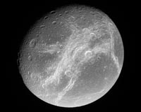Good mapping lays the ground for future research of the icy moon Thus far in Cassini's mission, the north polar regions of Dione and the other moons of Saturn (as well as the planet itself) have remained shrouded in seasonal darkness. Saturn takes nearly 30 years to orbit the Sun, and its seasons are more than seven years long. "Fortunately we were able to combine our Cassini data with lower-resolution images taken by the Voyager spacecraft in 1981," said Roatsch. As the Cassini mission continues, higher northern latitudes will come into sunlight, and Cassini maps should continue to improve. Naming features on these moons is another necessary but pleasant task, according to Roatsch. On all satellites of the four gas-giant planets, the craters, plains, ridges and troughs are named after people and places from ancient mythologies of various cultures. Features on Dione draw names from Virgil's "Aeneid." The Cassini Imaging Team proposed 45 new names for geological features on Dione, and these were recently approved by the International Astronomical Union, which oversees the naming and classification of celestial bodies. "Cassini's exploration of these bodies leaves a glorious and important legacy for generations to come", said,Carolyn Porco, Cassini imaging team leader and director of the Cassini Imaging Central Laboratory for Operations (CICLOPS) at the Space Science Institute in Boulder, Colorado. "Both robotic and human travelers to Saturn in the future will surely rely on this growing collection of maps and their derivatives to find their way among the moons of Saturn." The Cassini orbiter and its two onboard cameras were designed, developed and assembled at JPL. The imaging team consists of scientists from the US, UK, France and Germany. The imaging operations centre and team leader (Dr C. Porco) are based at the Space Science Institute in Boulder, Colorado, USA. Community Email This Article Comment On This Article Related Links Explore The Ring World of Saturn and her moons Jupiter and its Moons The million outer planets of a star called Sol News Flash at Mercury