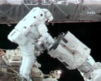 Washington (AFP) March 23, 2009 Discovery astronauts ended their third and final spacewalk on Monday on a slight down note, unable to fix a jammed cargo carrier system, NASA said. Richard Arnold and Joseph Acaba, two former science teachers turned astronauts, carried out a six-and-a-half hour walk in space, which included attempts to unblock the external cargo carrier. The carrier became stuck after Acaba and another astronaut inadvertently inserted a restraining pin upside down on Saturday. Although Arnold and Acaba managed to dislodge the pin, the cargo system remained stuck. The two emerged from the decompression chamber at 1537 GMT, six minutes earlier than planned, after mission control told them to stop trying. "Because the problem is not yet understood, Mission Control canceled Acaba and Arnold's installation of a similar payload attachment system on the starboard side" of the ISS, NASA said. "We're going to need to study this thing some more," said Rick Davis from mission control in Houston. The astronauts secured the system with "long-duration tethers," which are to protect the hardware until another attempt can be made in the future. Another controller later offered a more upbeat message: "You've left the space station in much better shape and we heartily thank you for your work." The International Space Station and Discovery crew will likely receive similar praise from US President Barack Obama, who -- along with a group of middle school students -- is to link up with the voyagers by telephone on Tuesday. The failure to unblock the cargo platform was the latest hiccup to afflict Discovery and long-running ISS. The two vessels maneuvered into lower orbit Sunday to avoid a piece of floating debris that could have passed close by during Monday's space walk. The object, which measured a little over 10 centimeters (four inches), came from a Chinese rocket launched in 1999 that broke up in March 2000. The astronauts did achieve their main tasks of repositioning an equipment cart from one side to another of the Mobile Transporter, the ISS's rail line. Elsewhere on the ISS, experts were working on a water-recycling unit that processes astronauts' urine and sweat into drinking water. A replacement part was brought by the Discovery and testing began Sunday. The samples will be taken back to Earth for analysis. The machine, which was delivered to the ISS in November -- and has not yet functioned properly -- is key to sustaining a bigger crew on the orbiting station and for long-term space expeditions, such as moon landings or missions to Mars. Carrying large amounts of water aboard the shuttle or other space vessels is expensive and takes up room needed for other equipment. The two astronauts also greased the hand joints of the ISS's robot arm. One of the Discovery mission's biggest tasks was to deliver the last set of solar arrays, which were successfully unfurled Friday. The ISS now has four solar panels, two per wing, containing 32,800 cells that convert sunlight into electricity. They will boost the outpost's full power generation from 90 to 120 kilowatts, providing the power the space station needs to carry out scientific experiments aboard Kibo and the European Columbus laboratory. The additions also make it possible to double the space station's crew from three to six, beginning in May. Discovery's latest mission, which blasted off last Sunday from Florida with a crew of seven astronauts, is one of the last major efforts in a decade-long push by 16 countries to build the 100-billion-dollar outpost in space. NASA has scheduled nine shuttle flights through 2010 to finish building the space station. Upcoming shuttle flights also include the last mission to service the orbiting Hubble telescope in May. Discovery is due to land back on Earth on March 28 at 1742 GMT, two days after a Russian Soyuz mission takes off for the ISS carrying a crew of three, including US billionaire businessman Charles Simonyi, who has shelled out 35 million dollars for his second trip as a space tourist. On Discovery, crew member Koichi Wakata became the first Japanese astronaut to join the ISS for a long stay. He is scheduled to remain on the orbiting station until June. The Discovery mission, delayed five times, is the first by a US space shuttle in 2009. Share This Article With Planet Earth