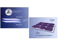 Wilmington DE (SPX) Jul 30, 2008 DuPont Photovoltaic Fluoromaterials (PVFM) has announced it has developed a proprietary technology to produce backsheet containing DuPont Tedlar polyvinyl fluoride (PVF) polymer in a single step, and has signed a Technology Licensing Agreement with Toppan Printing, located in Tokyo, Japan, to commercialize backsheet for photovoltaic (PV) modules using this new technology. This technical and business development is in line with the PVFM strategic intent to significantly increase the availability of DuPont Tedlar films and backsheet for the fast growing PV market. DuPont expects commercialization of the new backsheet product from Toppan using this technology in 2010. "This collaboration combines DuPont's proprietary technology for Tedlar polymer in backsheets, with Toppan's unique coating capability," said Kelly Kolliopoulos, global business manager, Tedlar. "We view the new backsheet technology as complementary to our continuing activities to increase the supply of Tedlar films in order to meet the industry's growth and demand for Tedlar. Increasing capacity continues to be the top priority for this business, and we will continue to communicate further developments related to Tedlar film expansion planning in the future." This technology license follows on the heels of recent manufacturing expansions for DuPont Tedlar polymer and the newest Tedlar PV2100 series films, in addition to incremental expansions of its capacity for Tedlar PV2000 series film. The capacity for Tedlar PV2100 films has increased by 20 fold in the last year. DuPont continues planning for future capacity expansions for the Tedlar monomer, polymer and films it produces. Community Email This Article Comment On This Article Related Links DuPont Photovoltaic Solutions All About Solar Energy at SolarDaily.com