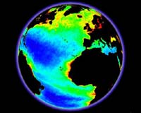 Paris, France (ESA) May 06, 2008 The Earth's oceans play a vital role in the carbon cycle, making it imperative that we understand marine biological activity enough to predict how our planet will react to the extra 25 000 million tonnes of carbon dioxide humans are pumping into the atmosphere annually. The colour of oceanic seawater depends largely on the number of microscopic phytoplankton, marine plants that live in the well-lit surface layer. Just like land-based plants, phytoplankton accumulate carbon dioxide during photosynthesis and store it in their tissues, making them potentially important carbon sinks. While phytoplankton themselves are individually microscopic, the chlorophyll they collectively contain colours the ocean's waters, which provides a means of detecting these tiny organisms from space with dedicated ocean colour sensors. To support ocean carbon cycle research, ESA's GlobColour project has merged 55 terabytes of data from three state-of-the-art instruments aboard different satellites, including MERIS aboard ESA's Envisat, MODIS aboard NASA's Aqua and SeaWiFS aboard GeoEye's Orbview-2, to produce a 10-year dataset of global ocean colour stretching to 2007. "I am quite impressed by the work ESA has done so far within GlobColour," said Dr Cyril Moulin of the International Ocean Carbon Coordination Project (IOCCP). "This 10-year dataset is going to be very useful for carbon studies and global modelling." The ocean colour datasets are freely available to the public via the GlobColour website. A new web interface, Hermes, is available which allows users to select a time period, spatial region and product type. Based on this input, the system extracts the appropriate ocean colour products for users to download. By combining observations from multiple sensors, GlobColour brings several benefits over existing products, such as better sampling of the daily variability, smaller errors because of the larger amount of data and reduced instrumental biases. To guarantee the data set is of good quality, the data have undergone an intensive validation process by comparing measurements from in-situ buoys. The conclusion was that the error statistics of the merged data are better than data from the three individual sensors. In addition to aiding carbon cycle research, ocean colour data can provide oceanographers with the information they need to monitor the state of the oceans for other applications, such as for the fisheries and aquaculture industries. GlobColour, part of ESA's Data User Element (DUE), will begin providing near-real time ocean colour observations to support this type of operational oceanography from mid-2008. This service will continue well into the future, thanks to the European Commission (EC), who will continue production of the GlobColour time series from 2009 as part of the Marine Core Service of the GMES (Global Monitoring for Environment and Security) initiative. "We need to sustain an international effort to make sure we can link one satellite dataset to another to build the long-time series that we need to distinguish change from cycles, and GlobColour is definitely a significant step in that perspective," said Dr James Yoder, Chair of the International Ocean-Colour Coordinating Group (IOCCG).