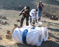 Challenge for the students The robot's test mission was designed to simulate a real lunar sample return mission. The rover had to be able to move from a 'landing site' to the rim of a lunar-like crater, descend to the bottom of the 15 m deep crater, locate and retrieve at least 0.1 kg of selected, visually distinctive, soil samples from the bottom of the crater and return to the 'landing site'. When descending and climbing the rim of the crater the rover had to be capable of driving on slopes with an incline of up to 40 degrees. The rover had to be remotely operated from a workstation located outside the crater, from where there was no direct visibility of the crater or its rim. And all this had to be done in light which cast very long shadows at the rim and total darkness in the crater Student teams from all over Europe submitted proposals to ESA during the months after the announcement of opportunity, and from these, eight teams were selected. They were asked to design their robotic systems to be presented in a Critical Design Review last July. Finally, after successfully completing a Test Readiness Review, the teams constructed their robots for the final challenge event. Their work was supported by funding from the ESA General Studies Programme. The challenge culminated last week, when the eight selected teams gathered in Tenerife with their robots. "Although we had only one group accomplish the mission, I think everybody won here," states Gianfranco Visentin. "The teams came with great ideas, they realised them in an incredibly short time and show that you can actually solve a difficult technical problem. From the education point of view, we wanted these young engineers to be motivated and learn about space robotics and to do something practical with it, and this is a full success." The final results will be announced shortly. Community Email This Article Comment On This Article Related Links Automation and robotics Mars News and Information at MarsDaily.com Lunar Dreams and more