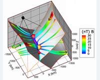 Paris, France (ESA) Aug 13, 2008 A 3-dimensional (3-D) "magnetic snapshot" of the heart of a magnetic reconnection region has been obtained in-situ by the four satellites of the ESA Cluster mission, at one-third of the distance to the Moon from Earth. The snapshot, constructed using a new analysis method, reveals for the first time a 3-D magnetic structure known as a magnetic null pair where two reconnection sites, or nulls, are magnetically linked. The rare occurrence of one of the Cluster satellites passing by one null of the pair has uncovered a new phenomenon where the electrons are temporarily trapped around that null. The electron trapping may ultimately lead to the formation of energetic electron beams, a well-known but poorly understood consequence of reconnection. These breakthroughs in the study of 3-D magnetic reconnection have been published in the Journal of Geophysical Research (16 May 2008) and Geophysical Research Letters (29 July 2008). Up until now, no method has been able to identify a pair of magnetic nulls simultaneously. A first attempt to detect such a null pair was reported last year by Xiao et al. in Nature Physics (see also: Cluster unveils a new 3D vision of magnetic reconnection). Based on Cluster observations, characteristics of two nulls identified at two different time instances were gathered to infer the properties of the combined null pair under the strong assumption that the characteristics of the null identified first remained unchanged until the second null was observed. In a paper published in the 29 July 2008 issue of Geophysical Review Letters (GRL), Dr. He (Peking University, China) and colleagues present for the first time the simultaneous identification of a magnetic null pair using a newly developed method which is detailed in a paper published in the Journal of Geophysical Research last May. This 3-D magnetic snapshot also reveals that the Cluster C2 satellite passed close to one magnetic null. This very rare occurrence provided a first opportunity to obtain rather detailed in-situ measurements of the physics in the inner reconnection region for such a magnetic configuration. In particular, simultaneous measurements of an electron density peak, an enhancement of high frequency electrostatic waves, as well as bi-directional energetic electron beams along the magnetic field were obtained. The theoretical implications of these findings are addressed in the GRL paper. The authors suggest a new scenario of electron dynamics in the null region: the thermal electrons are trapped in a cusp-like magnetic cavity in the inner region around the magnetic null pair. This electron trapping may be the cause of important reconnection electron dynamics such as electron acceleration, drifting and enhanced reconnection rate. "These results significantly improve our understanding of the 3-D reconnection process with a null pair structure. The observations and suggested scenario pave the way for future studies on reconnection, not only for space physicists but also for the astrophysical and laboratory plasmas communities, since the chance of such in-situ measurements is expected to be very rare", says Prof. Tu, Peking University, China, co-author of the papers. "The results will also provide a valuable reference for the NASA Magnetospheric Multiscale (MMS) mission and the ESA Cross-Scale mission. A primary goal of these future missions is to measure the 3-D geometry of the inner reconnection region. The results reported in GRL present new observations and an associated scenario in such a region for the first time", wrote Prof. Zong from Peking University and University of Massachusetts (Lowell, USA), co-author of the papers. "This is indeed precisely the aim of the Cross-Scale mission: studying the heart of magnetic reconnection by measuring the electron scale near the null with four spacecraft, as well as studying ion and fluid scales", says Philippe Escoubet, ESA Cluster project scientist and Cross-Scale study scientist. Community Email This Article Comment On This Article Related Links http://sci.esa.int/science-e/www/area/index.cfm?fareaid=8 Understanding Time and Space