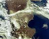 Paris, France (ESA) May 09, 2008Chile's Chaiten Volcano is shown spewing ash and smoke (centre left of image) into the air for hundreds of km over Argentina's Patagonia Plateau in this Envisat image acquired on 5 May 2008. |